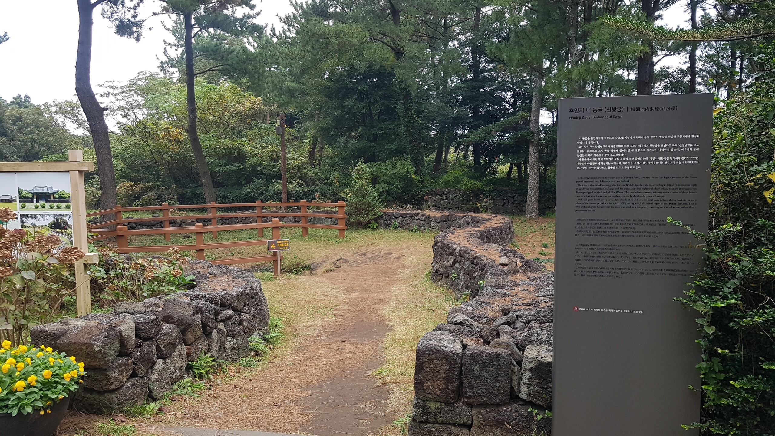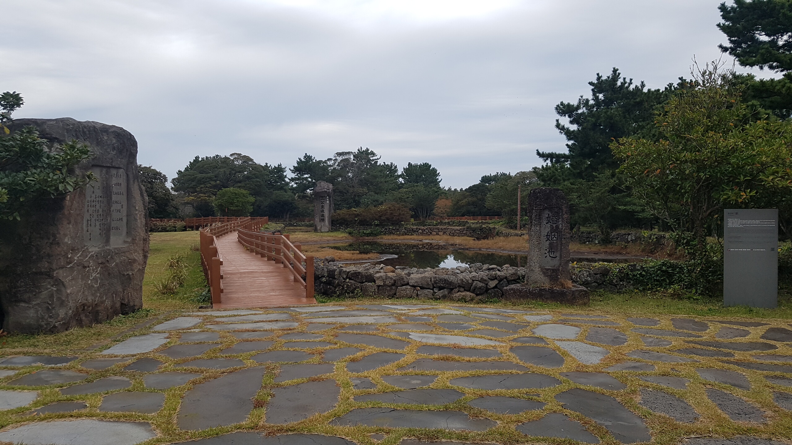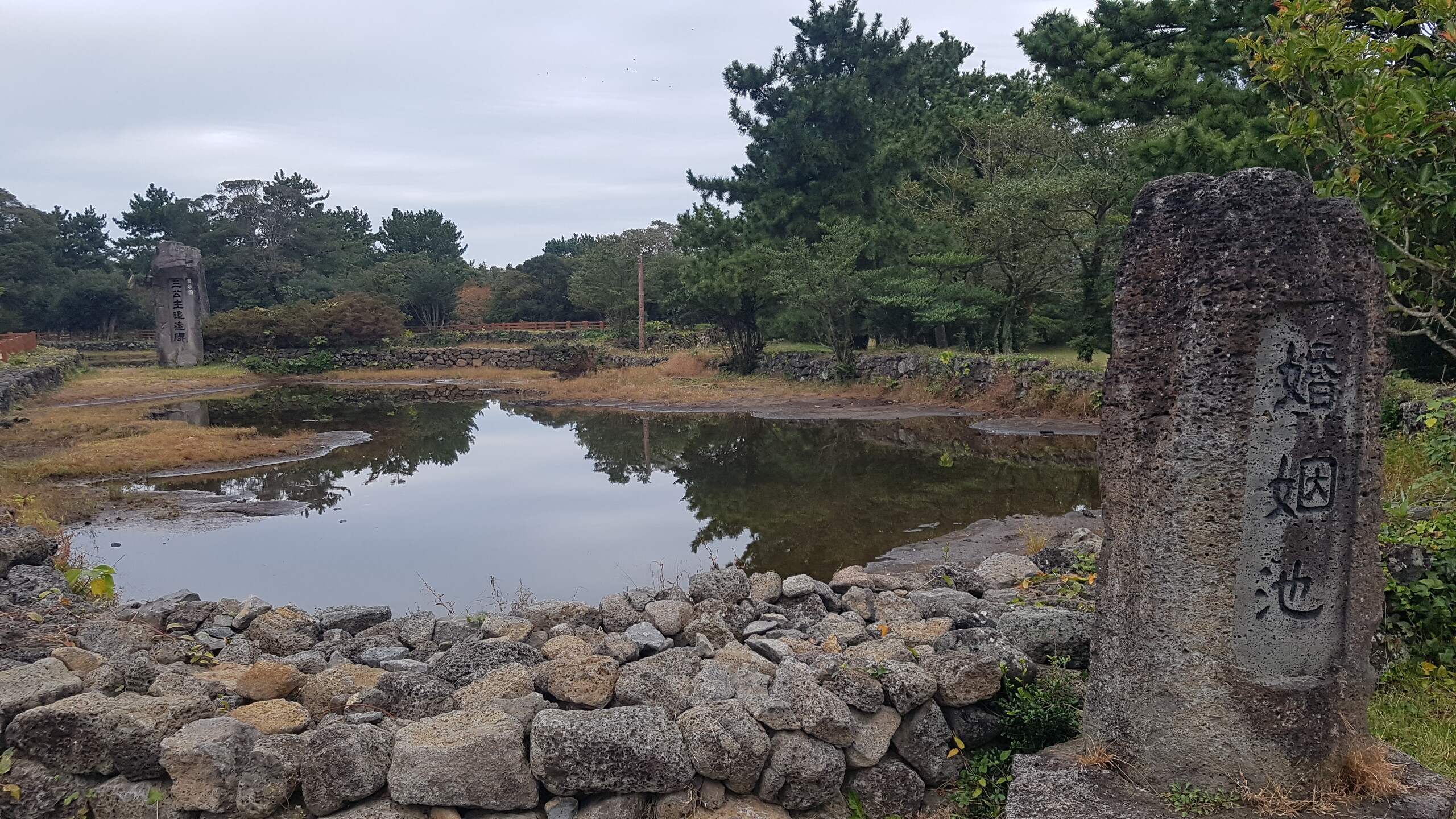 삼성혈에서 태어난 탐라의 시조 고.양.부 3신이 수렵생활을 하며 지내다가 동쪽나라(벽랑국)에서 온 세 공주와 합동혼례를 올렸다는 조그마한 연못이다. 얕고 작은 연못에 불과하지만, 삼신인이 이곳에서 혼례를 올림으로써 비로소 제주민이 늘어나고 농사가 시작되었다 한다. 혼인지 바로 옆에는 삼신인이 혼례를 올린 후 신방을 차렸던 조그만 굴이 있는데, 그 굴이 세 갈래로 되어 있어 순전히 전설만은 아닌 듯하다. 이곳은 삼성혈과 함께 제주도 시조의 자취를 더듬어 보기 좋은 곳으로 여름철에 피어나는 붉은 연꽃은 노을처럼 곱기만 하다.