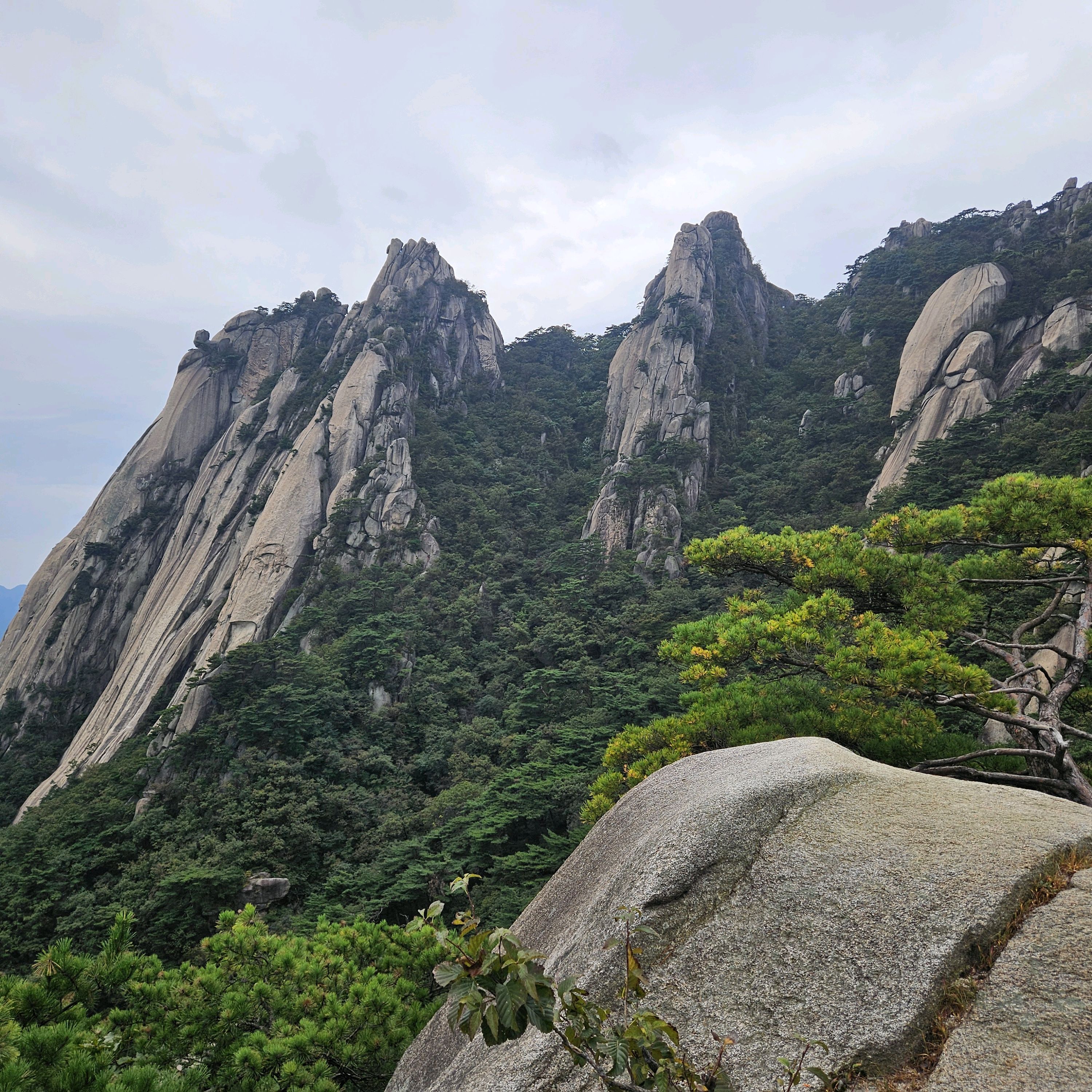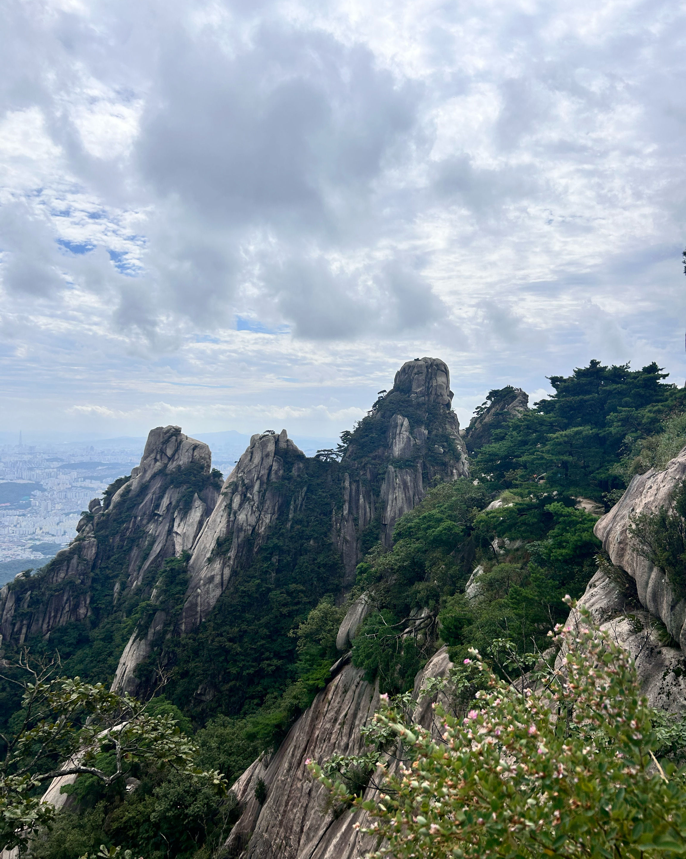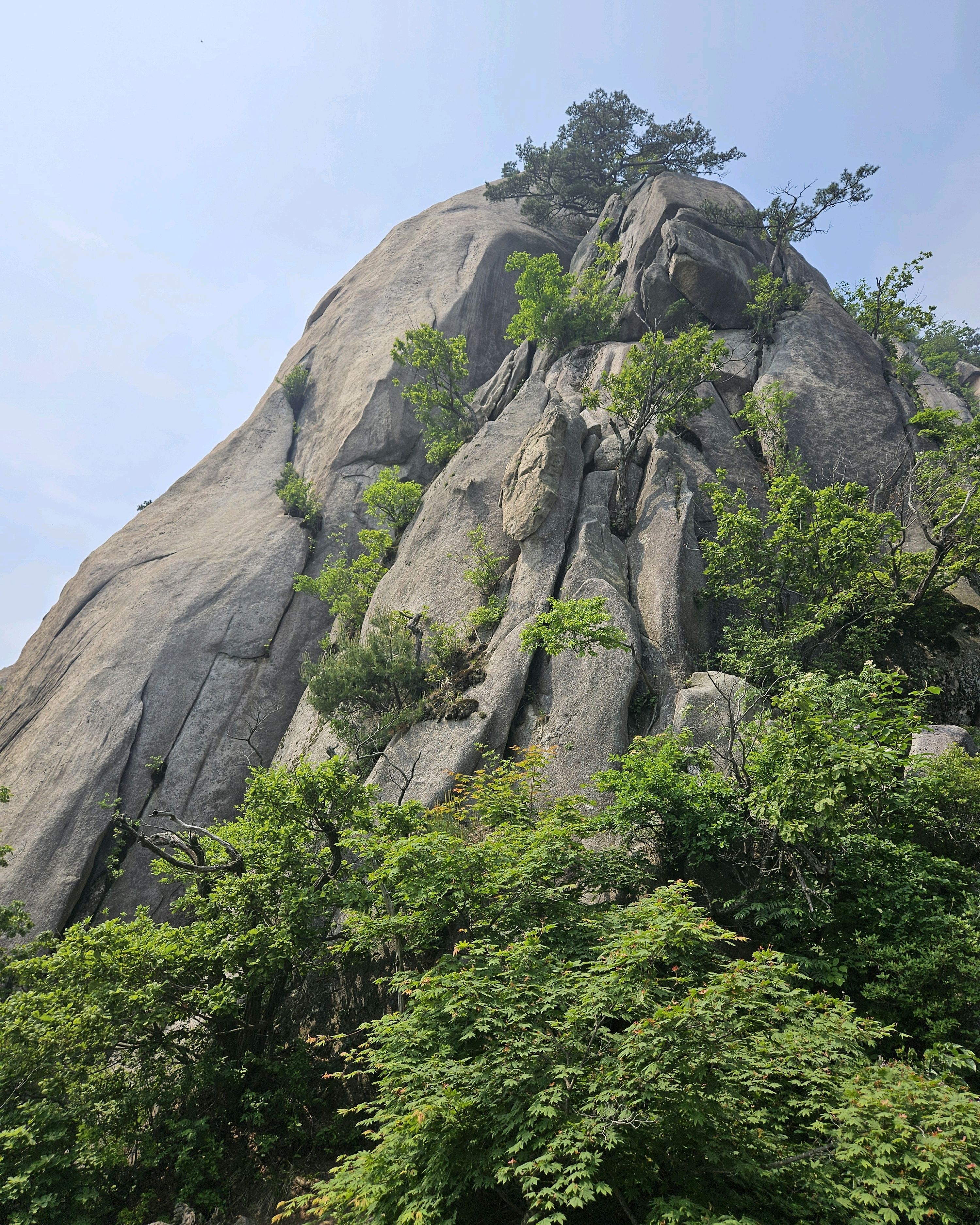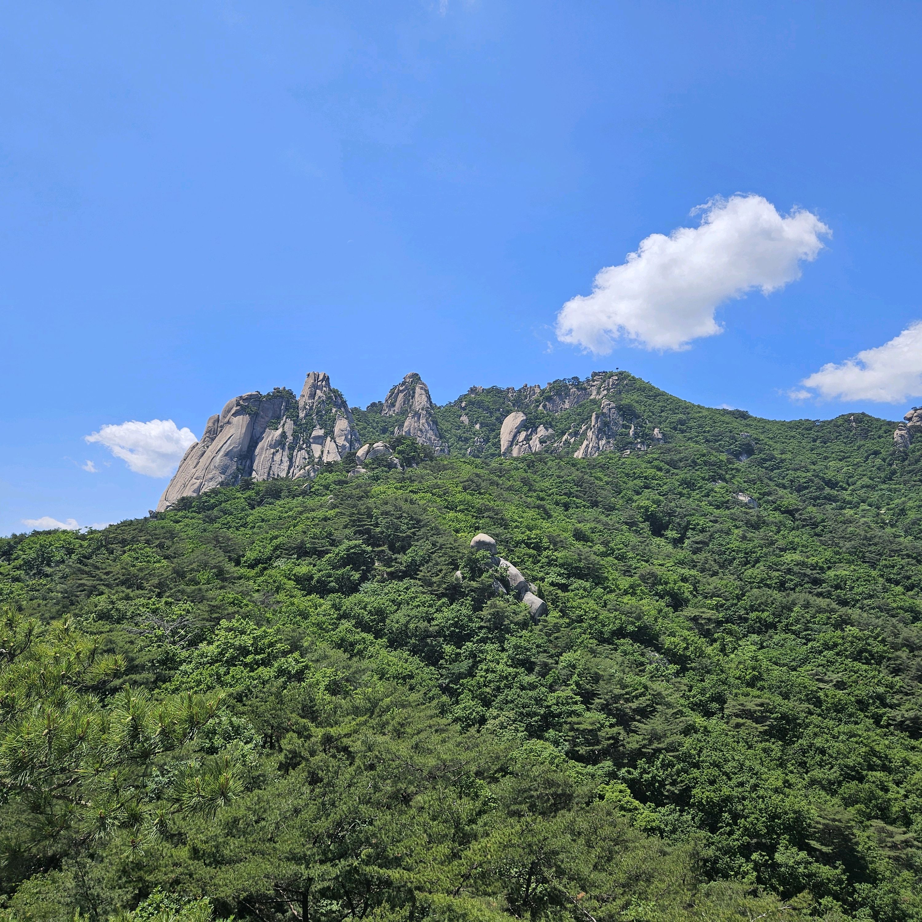 |  만장봉에서 본 뷰~ 마치 북한산의 숨은벽을 보는 것처럼 뾰족뾰족 바위봉우리들이 예뻐요. 도봉산의 숲도 초록초록 싱그러운 기운을 한껏 내뿜고 있습니다. 2025년 05월 29일 |