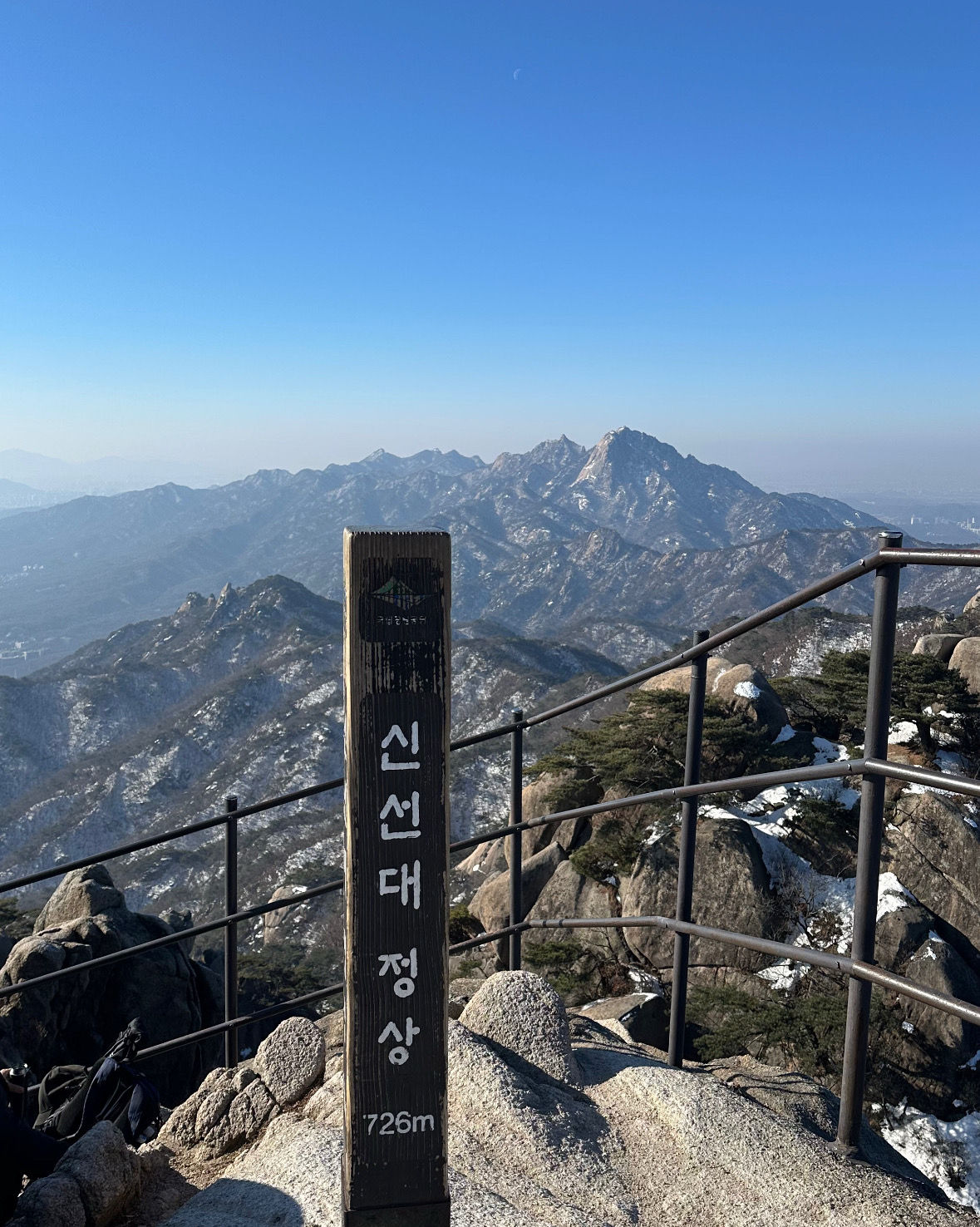 |  도봉산 신선대(726m) 도봉산의 최고봉은 자운봉(740m)이나 등산객 출입불가