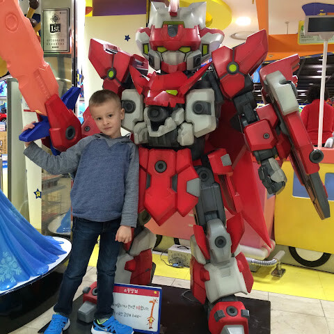 공원에는 실내외 놀이기구가 많습니다. 금요일에 갔더니 아이들로 굉장히 붐볐어요. 시간이 두 시간밖에 없어서 두 가지 게임밖에 못 해봤고, 줄도 꽤 오래 서 있어야 했습니다.