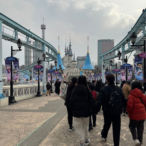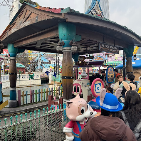 서울의 한 쇼핑센터 안에 있는 귀여운 테마파크입니다. 아이들이 좋아하기 좋고 디즈니랜드와 비슷한 점이 많아요. 하지만 놀이기구 줄이 정말 길어요. 매직 패스는 필수입니다. 없으면 인기 놀이기구를 타려면 2시간씩 기다려야 할 수도 있어요. 매직 패스를 구할 수 없다면 아예 가지 않거나, 개장 시간에 맞춰 가서 인기 놀이기구 3~4개 줄에 최대한 빨리 서는 걸 추천합니다.