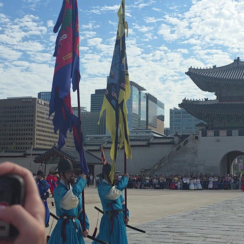 하지만 너무 낭만적으로만 생각하지 말자. 기념품 가게들은 이미 손질을 시작했고, "한복 대여 산업"은 이 궁궐을 사실상 라이브 액션 사진 스튜디오로 만들어 버렸다. 역사는 살아 숨 쉬는 것이 아니라 연출된 것이며, 모든 곳이 너무 연출된 듯한 느낌을 준다. 마치 다음 한국 드라마 카메오 출연을 기다리는 시대극 세트장 같다. 경비병들은 의연하게 서 있지만, 아마도 조상 대대로 살아온 궁궐이 어떻게 어색한 커플 셀카의 배경이 되었는지 궁금할 것이다.