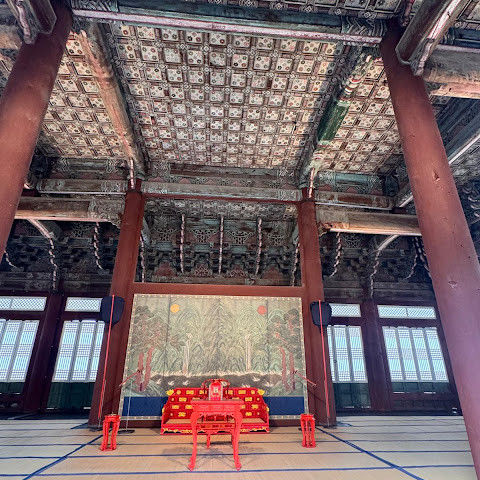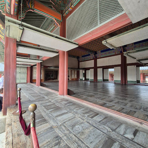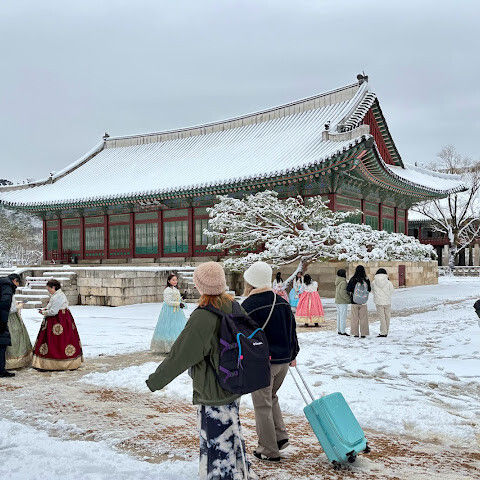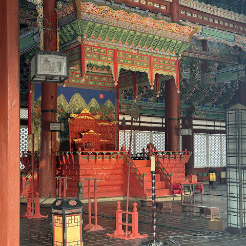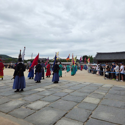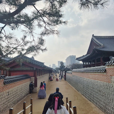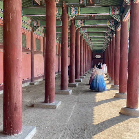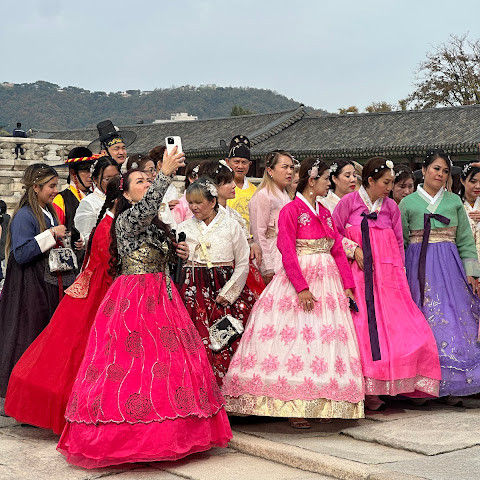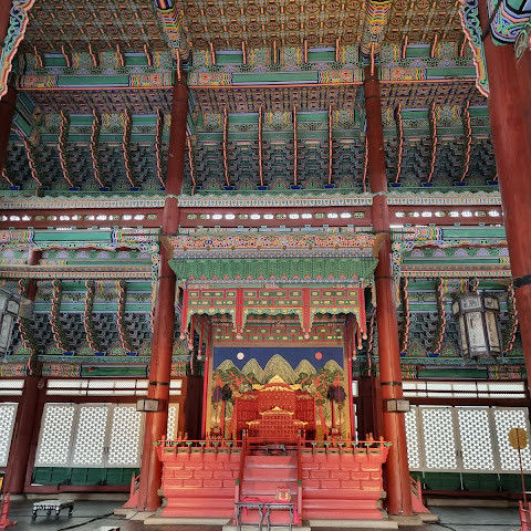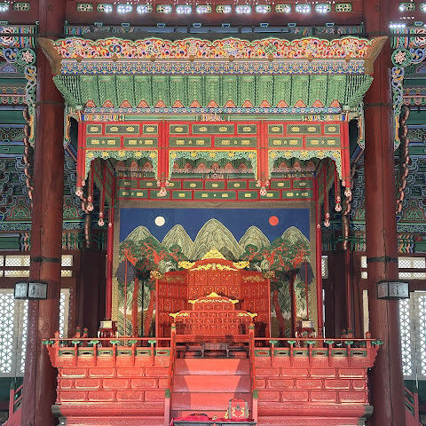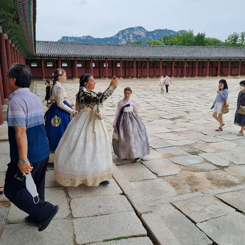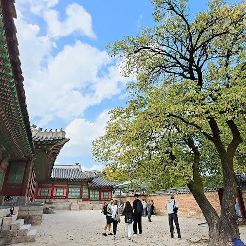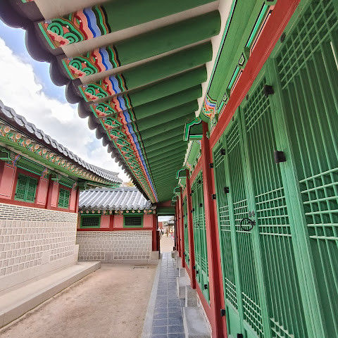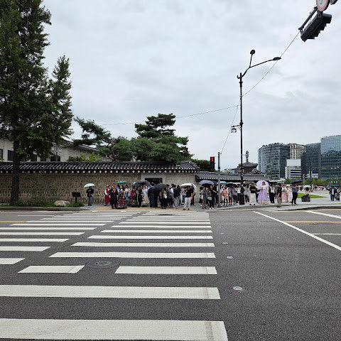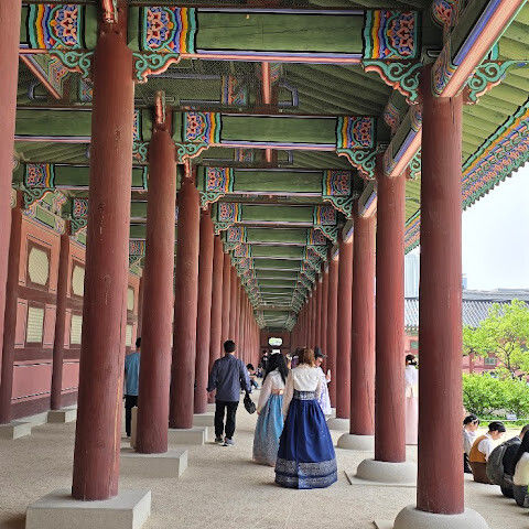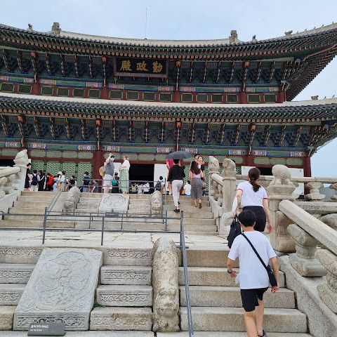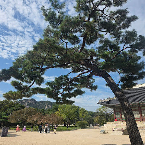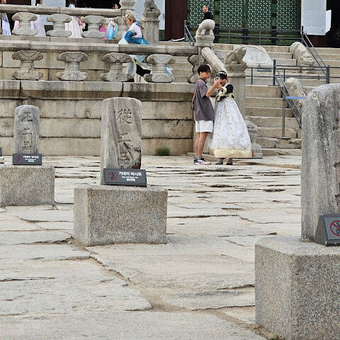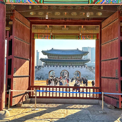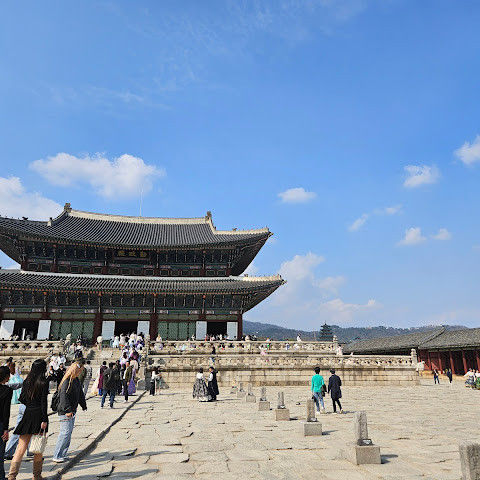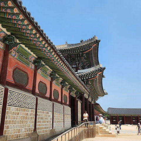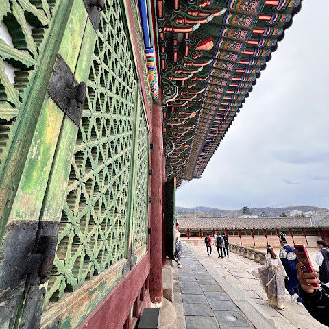 하지만 너무 낭만적으로만 생각하지 말자. 기념품 가게들은 이미 손질을 시작했고, "한복 대여 산업"은 이 궁궐을 사실상 라이브 액션 사진 스튜디오로 만들어 버렸다. 역사는 살아 숨 쉬는 것이 아니라 연출된 것이며, 모든 곳이 너무 연출된 듯한 느낌을 준다. 마치 다음 한국 드라마 카메오 출연을 기다리는 시대극 세트장 같다. 경비병들은 의연하게 서 있지만, 아마도 조상 대대로 살아온 궁궐이 어떻게 어색한 커플 셀카의 배경이 되었는지 궁금할 것이다.