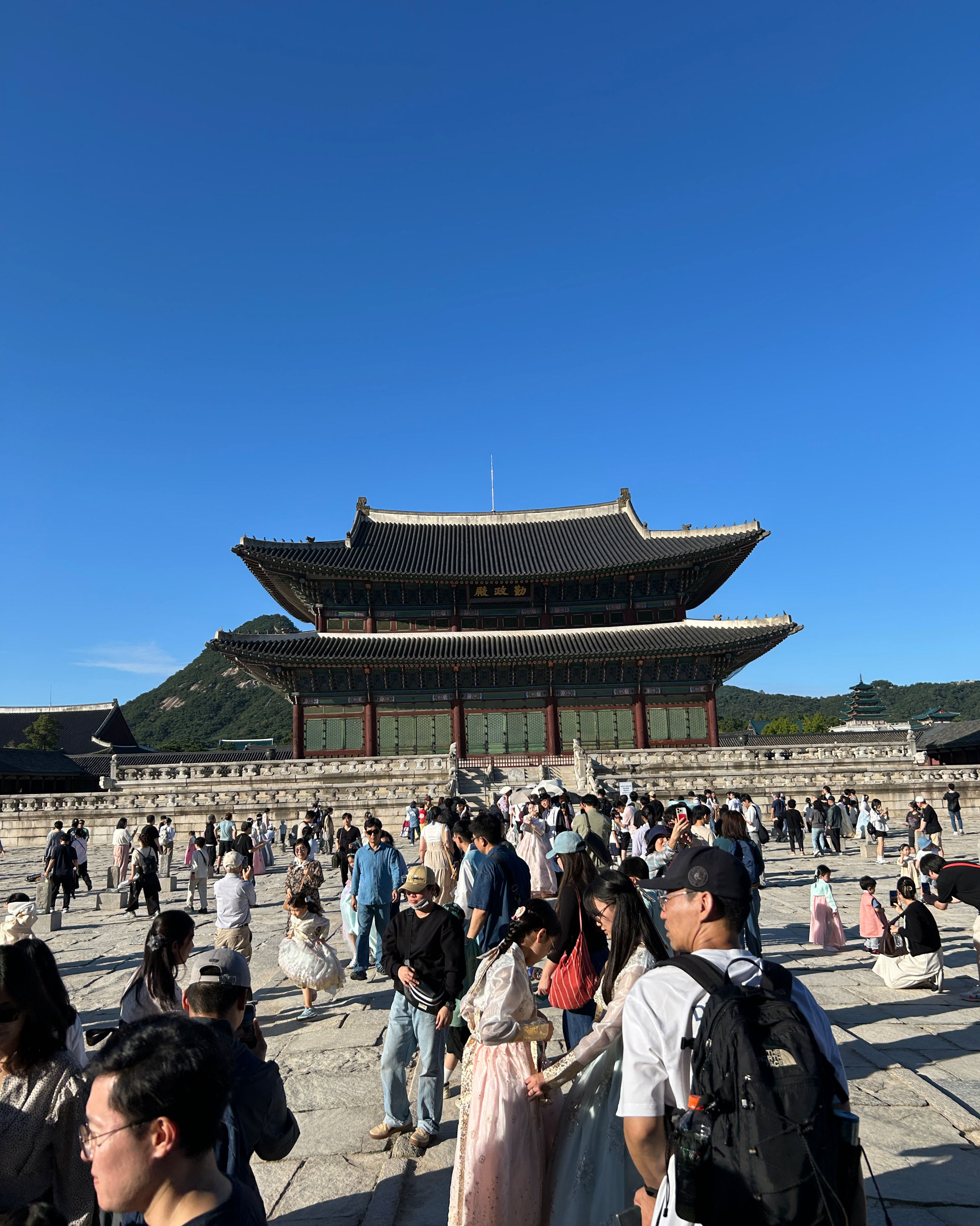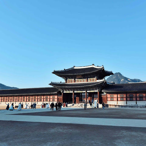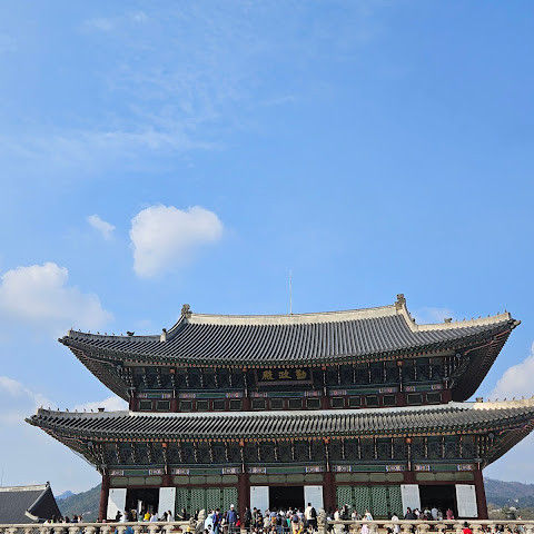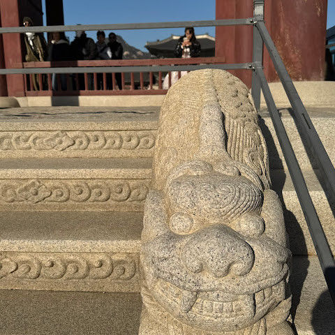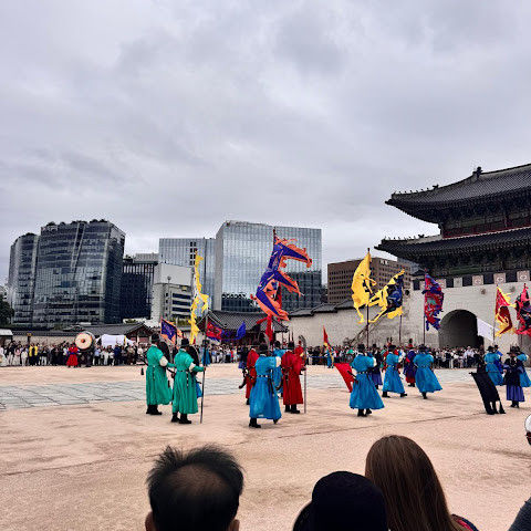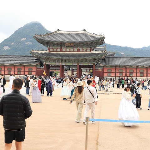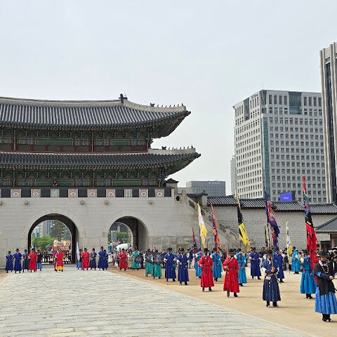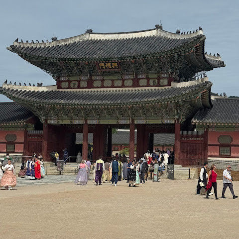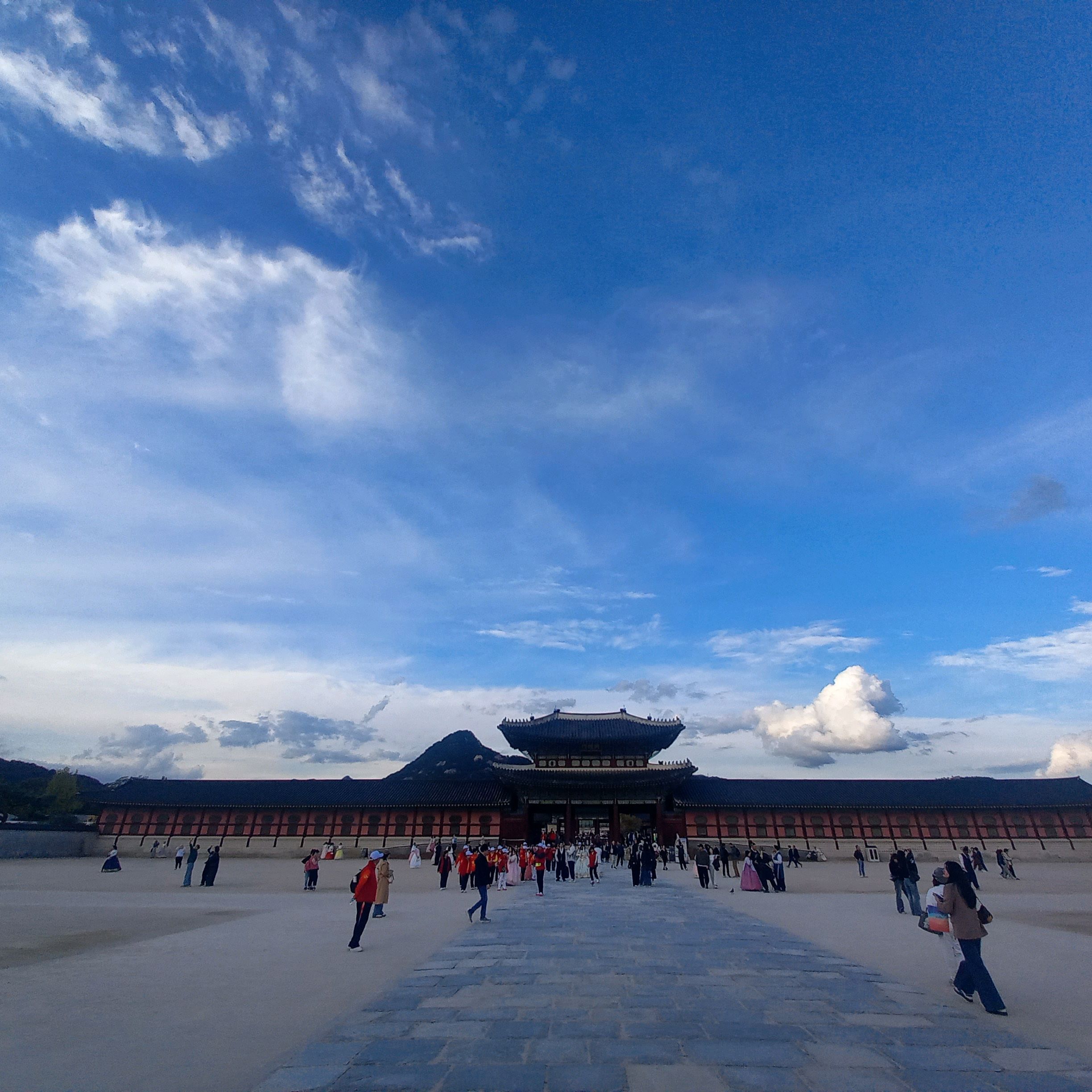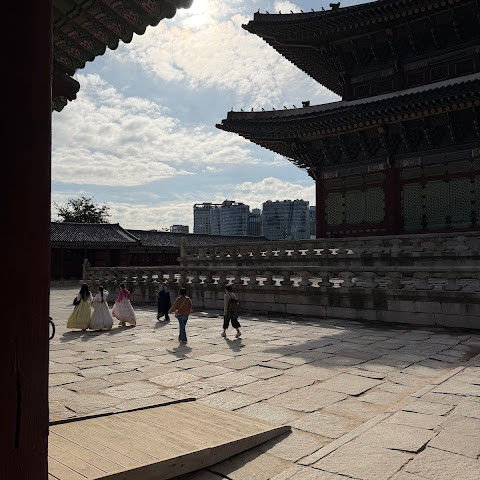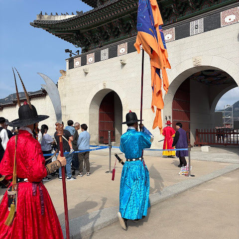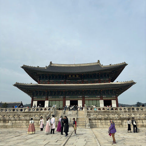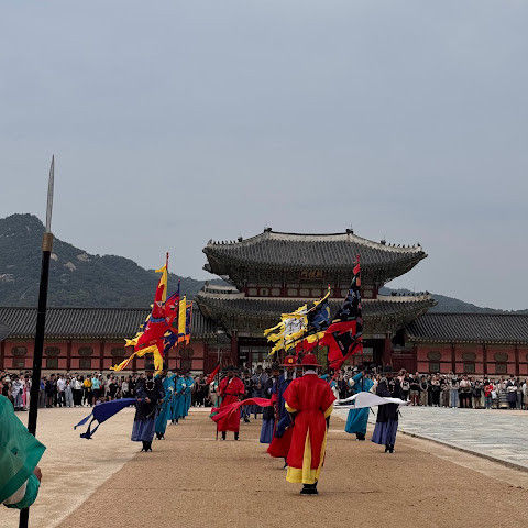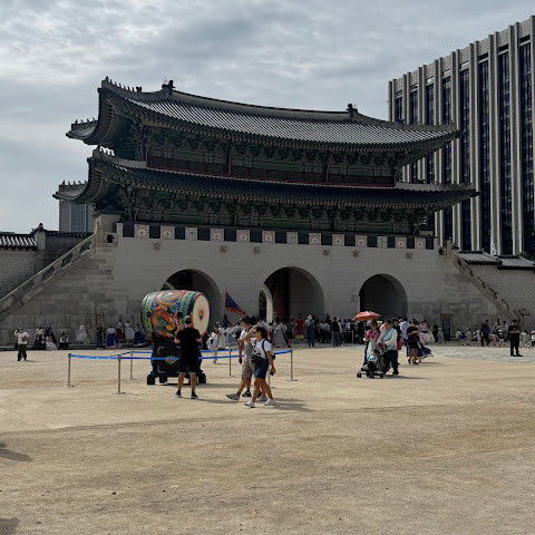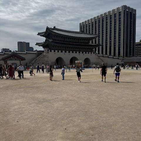 아, 경복궁. 여전히 자존감이 뚝뚝 떨어지는 보기 드문 궁궐. 일본의 다른 유적지들과는 달리, 이곳은 기념품에 대한 절박함이 전혀 느껴지지 않는다. 넓은 공간과 균형, 그리고 석조 안뜰과 무표정한 경비병들 사이에 희미한 위엄이 감돈다. 건축물은 숨 쉬듯 숨 쉬고 있다. 절제되면서도 위엄 있는 모습은 마치 방문객들에게 "우리는 침략과 독재를 겪었지, 인플루언서들의 침략을 겪은 게 아니다"라고 상기시키는 듯하다. 심지어 관중들조차 조금 더 정중해 보이는데, 틱톡 댄스로 그 웅장함을 망치고 싶지는 않은 모양이다.