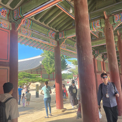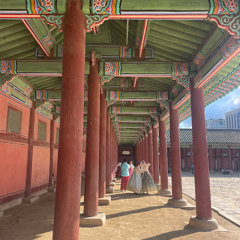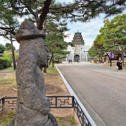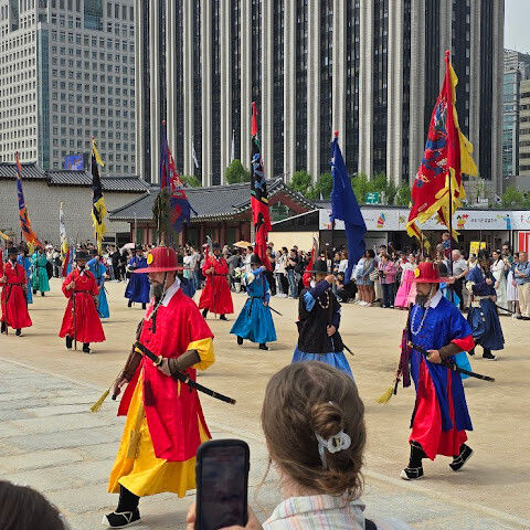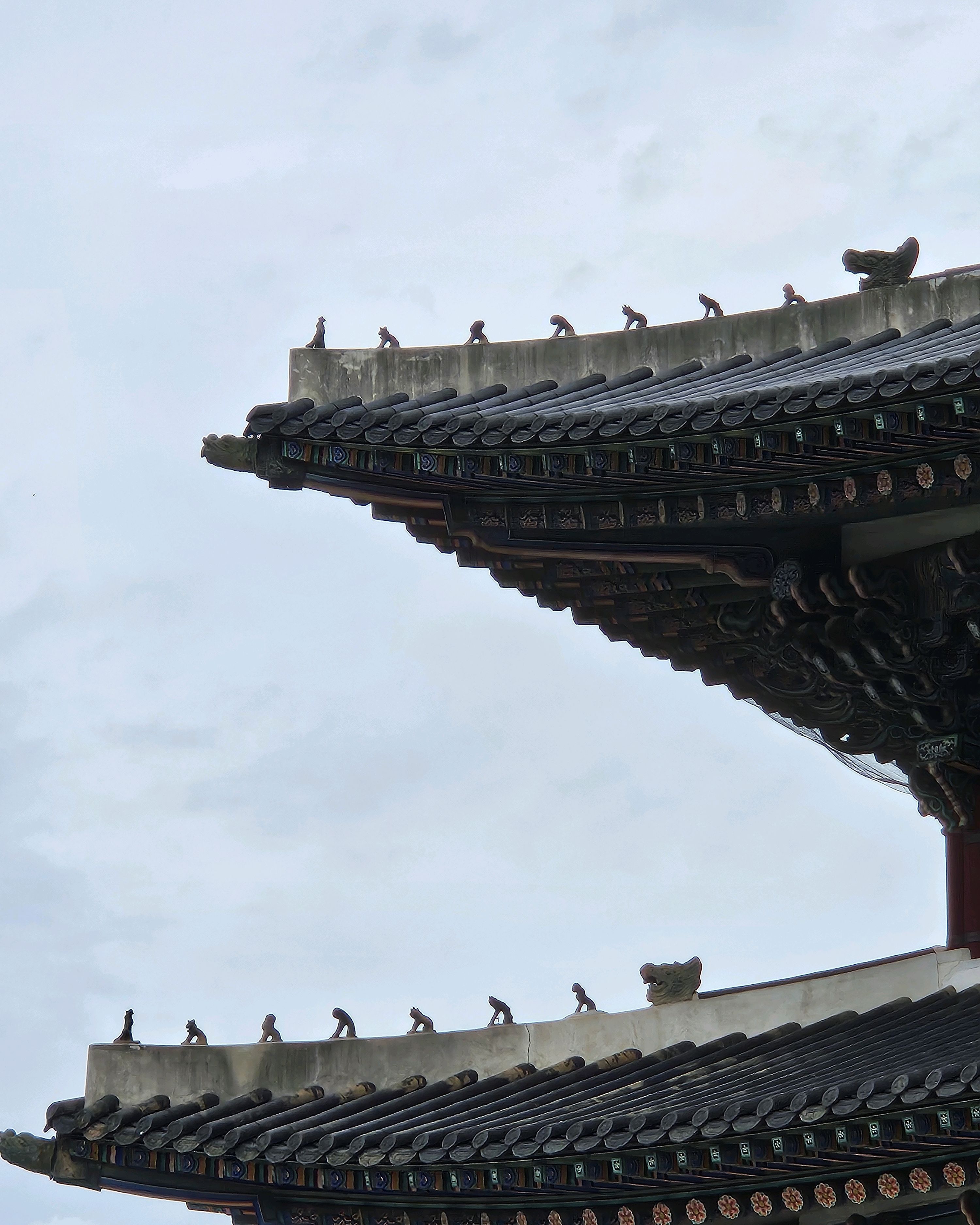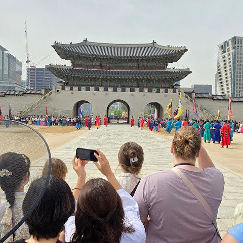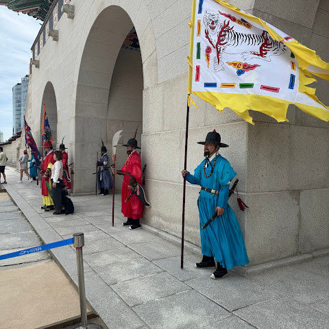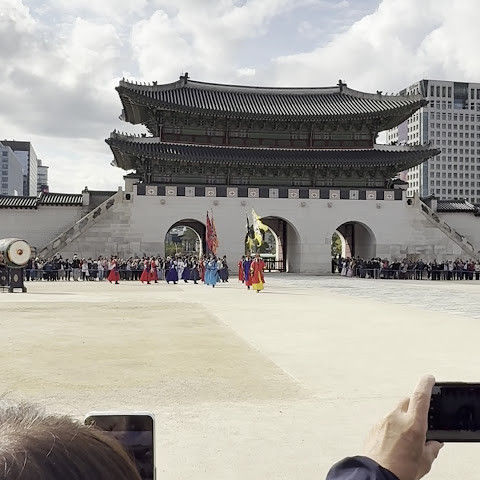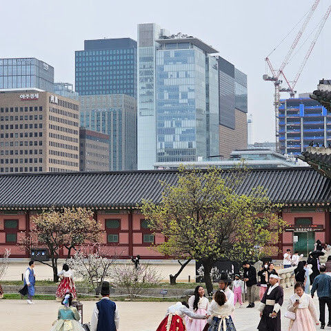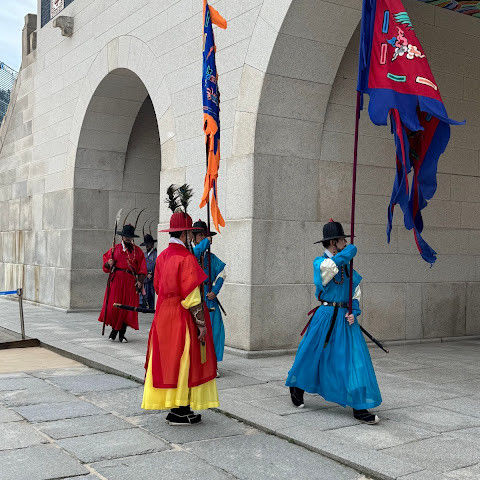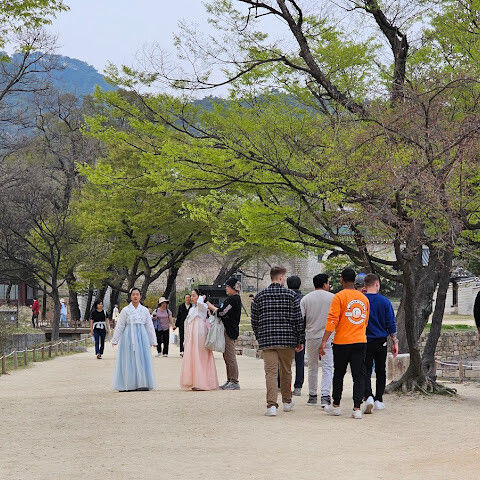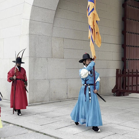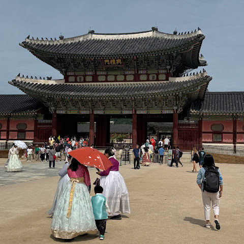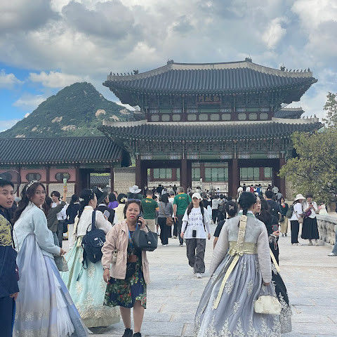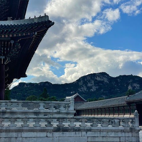 아, 경복궁. 여전히 자존감이 뚝뚝 떨어지는 보기 드문 궁궐. 일본의 다른 유적지들과는 달리, 이곳은 기념품에 대한 절박함이 전혀 느껴지지 않는다. 넓은 공간과 균형, 그리고 석조 안뜰과 무표정한 경비병들 사이에 희미한 위엄이 감돈다. 건축물은 숨 쉬듯 숨 쉬고 있다. 절제되면서도 위엄 있는 모습은 마치 방문객들에게 "우리는 침략과 독재를 겪었지, 인플루언서들의 침략을 겪은 게 아니다"라고 상기시키는 듯하다. 심지어 관중들조차 조금 더 정중해 보이는데, 틱톡 댄스로 그 웅장함을 망치고 싶지는 않은 모양이다.