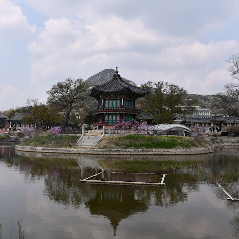 경복궁은 한국 문화와 역사를 대표하는 상징 중 하나입니다. 1395년 조선 왕조 때 건립된 이 궁궐은 정치적 중심지였을 뿐만 아니라 전통 건축 예술을 생생하게 보여주는 공간이기도 합니다. 곡선 기와지붕, 주홍색 나무 기둥, 그리고 동양의 풍수 원리에 따른 대칭적인 배치는 경복궁 전체가 웅장하고 위풍당당한 모습을 자랑합니다. 특히 인공 구조물과 자연의 조화가 돋보입니다. 뒤로는 우뚝 솟은 북악산이, 앞으로는 넓은 광장이 있어 마치 산과 물이 만나는 듯한 분위기를 자아냅니다. 오늘날 경복궁은 조선 왕조의 황금기를 떠올리게 할 뿐만 아니라, 근대화의 흐름 속에서도 전통적 정체성을 보존하려는 노력을 생생하게 보여줍니다. 고대의 아름다움과 현대적인 활력이 어우러진 경복궁은 국제 관광객에게 매력적인 문화 여행지로 자리매김하고 있습니다.