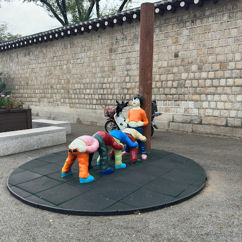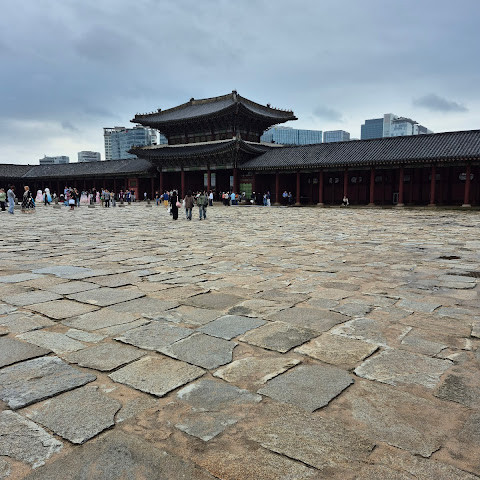 아, 경복궁. 여전히 자존감이 뚝뚝 떨어지는 보기 드문 궁궐. 일본의 다른 유적지들과는 달리, 이곳은 기념품에 대한 절박함이 전혀 느껴지지 않는다. 넓은 공간과 균형, 그리고 석조 안뜰과 무표정한 경비병들 사이에 희미한 위엄이 감돈다. 건축물은 숨 쉬듯 숨 쉬고 있다. 절제되면서도 위엄 있는 모습은 마치 방문객들에게 "우리는 침략과 독재를 겪었지, 인플루언서들의 침략을 겪은 게 아니다"라고 상기시키는 듯하다. 심지어 관중들조차 조금 더 정중해 보이는데, 틱톡 댄스로 그 웅장함을 망치고 싶지는 않은 모양이다.
