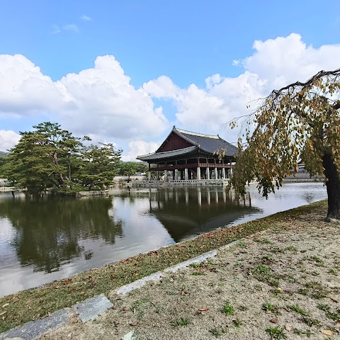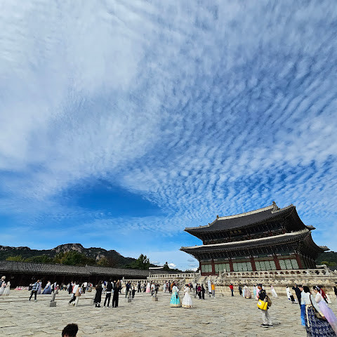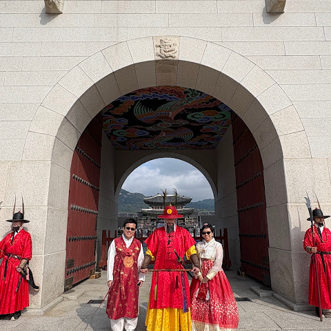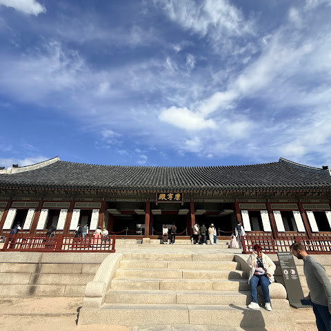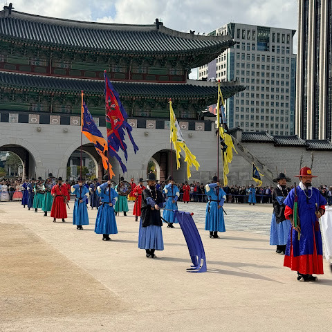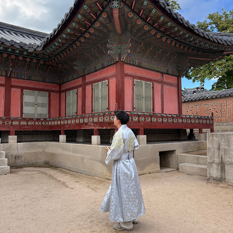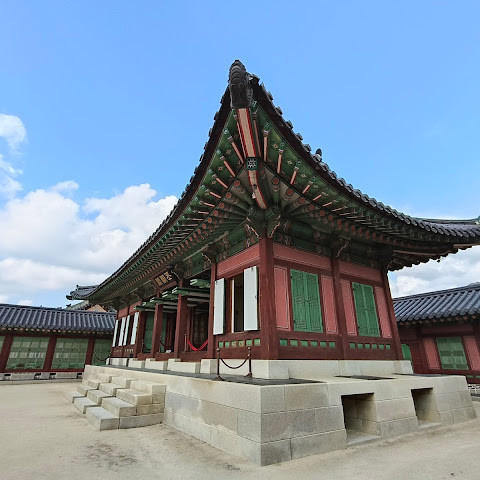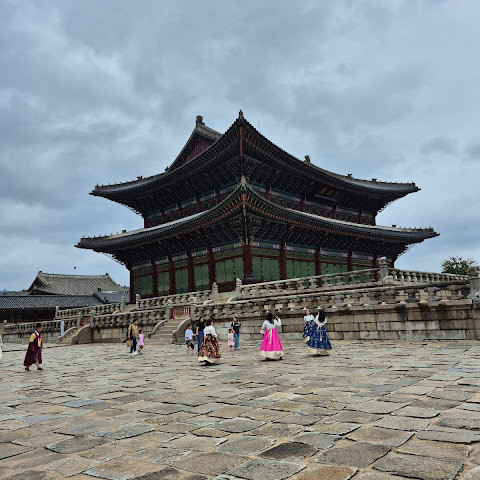 하지만 너무 낭만적으로만 생각하지 말자. 기념품 가게들은 이미 손질을 시작했고, "한복 대여 산업"은 이 궁궐을 사실상 라이브 액션 사진 스튜디오로 만들어 버렸다. 역사는 살아 숨 쉬는 것이 아니라 연출된 것이며, 모든 곳이 너무 연출된 듯한 느낌을 준다. 마치 다음 한국 드라마 카메오 출연을 기다리는 시대극 세트장 같다. 경비병들은 의연하게 서 있지만, 아마도 조상 대대로 살아온 궁궐이 어떻게 어색한 커플 셀카의 배경이 되었는지 궁금할 것이다.