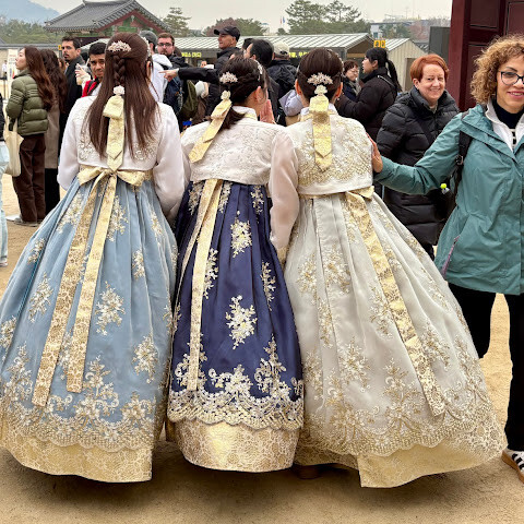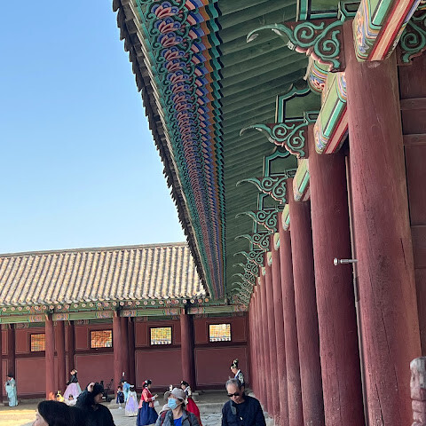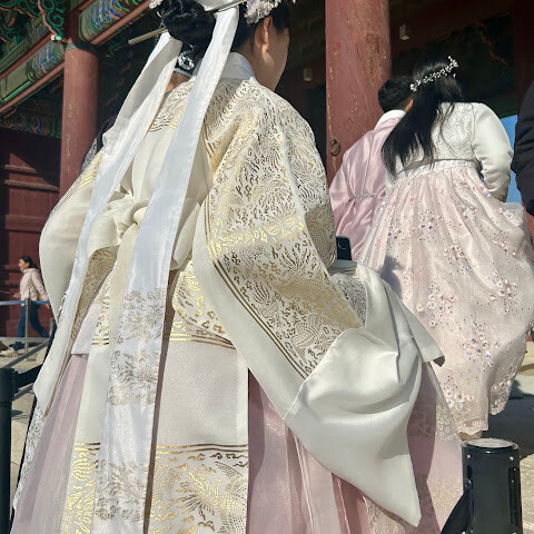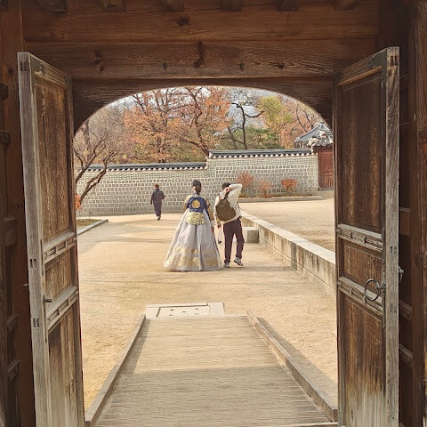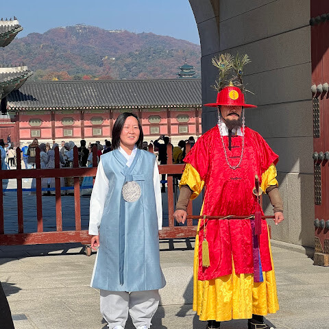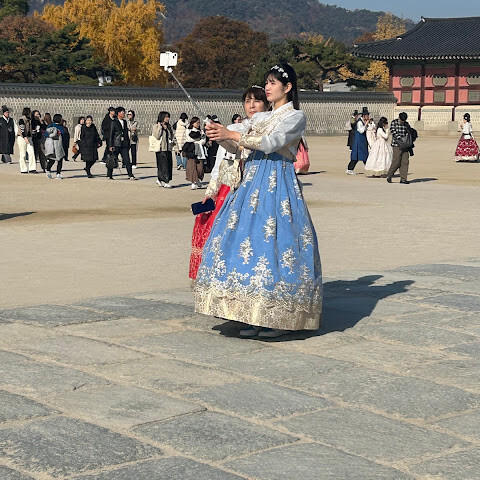 전통 의상을 입고, 궁궐 안을 거닐고, 15세기 근위병 교대식을 관람하고, 투어를 예약하고, 사진 촬영까지... 모든 걸 다 해봤어요. 한복을 입으면 입장료가 면제됩니다. 정말 황홀한 경험이었어요. 선택할 수 있는 한복 가게가 많으니, 디자인과 품질이 다양하니 구매 전에 최대한 많이 둘러보세요.