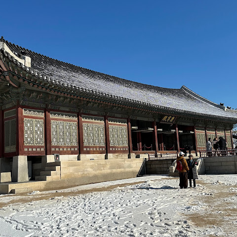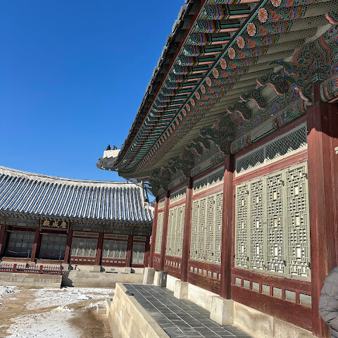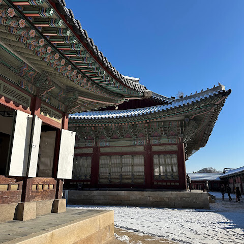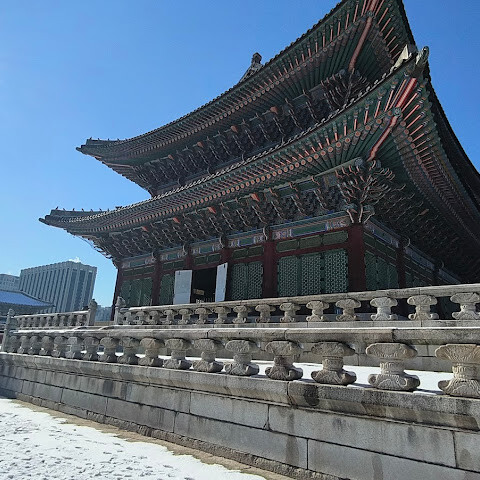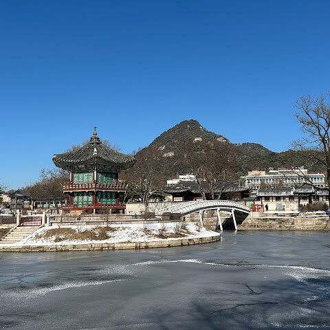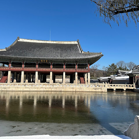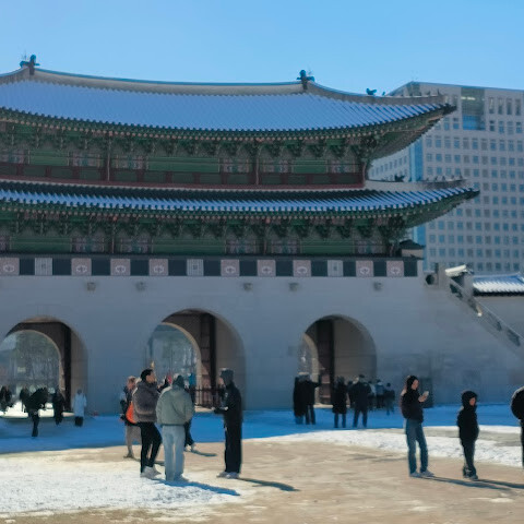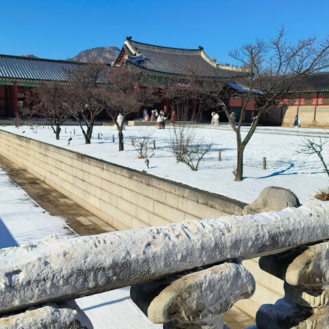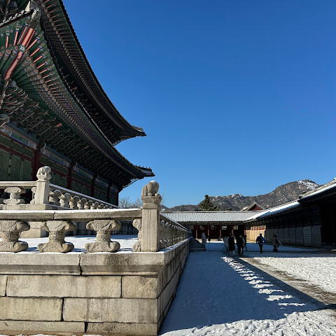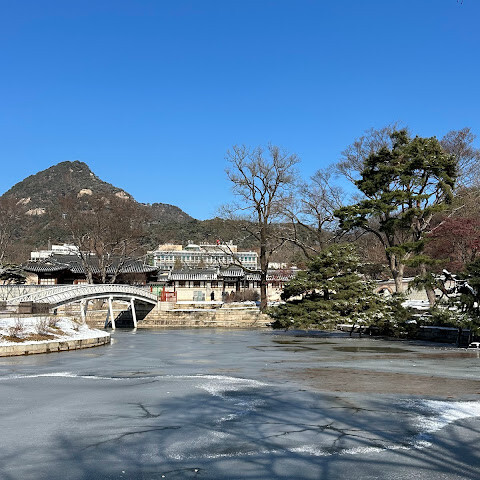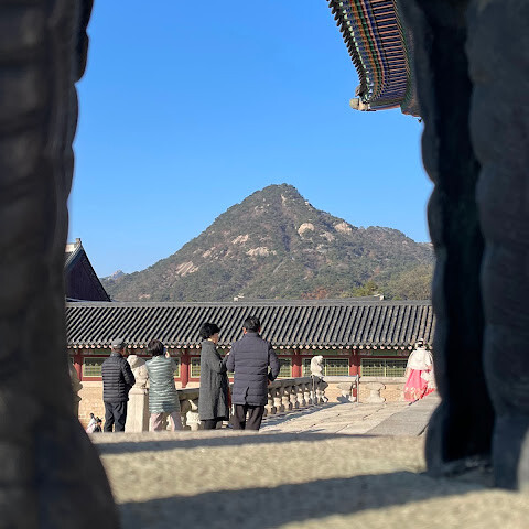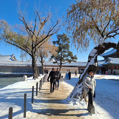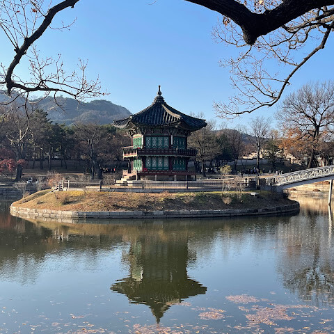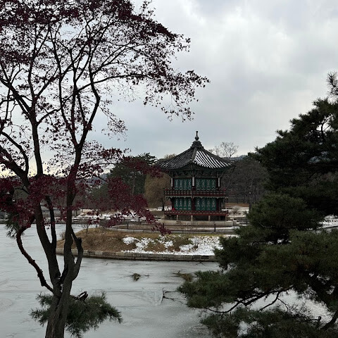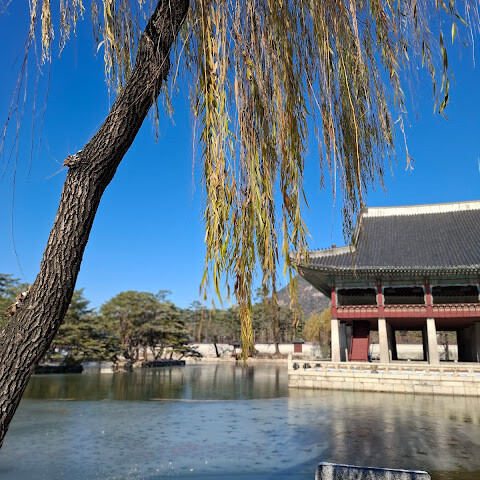 경복궁 초겨울 나들이는 쌀쌀한 공기 속에서도 고궁 특유의 고즈넉함을 느낄 수 있는 시간이었습니다. 서울 일정 중 짬을 내어 들렀던 경복궁은 이미 가을빛이 많이 사라져 있었지만, 향원정 주변에는 아직 남은 단풍이 늦가을의 여운을 전해주고 있었습니다. 맑게 갠 하늘 아래 고궁의 기와지붕은 더욱 또렷하게 빛났고, 나무들은 잎을 떨구며 겨울을 맞을 준비를 하고 있는 듯 보였습니다.