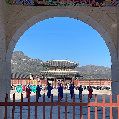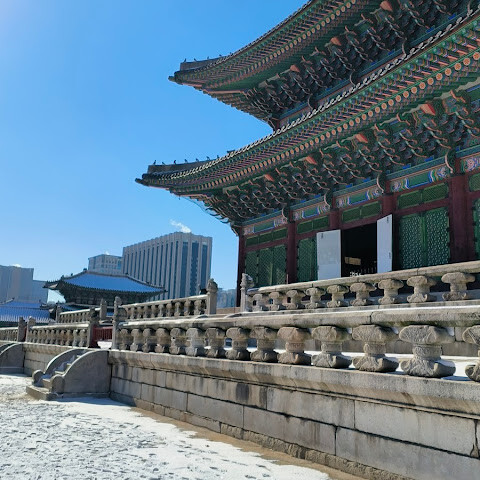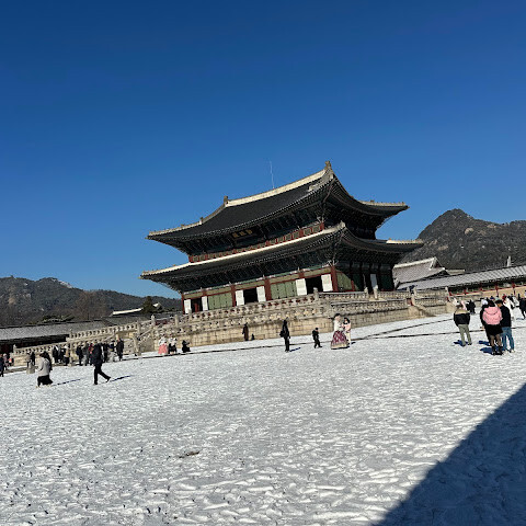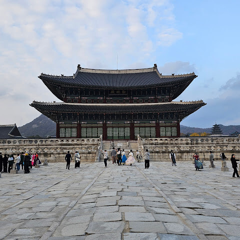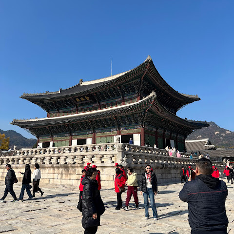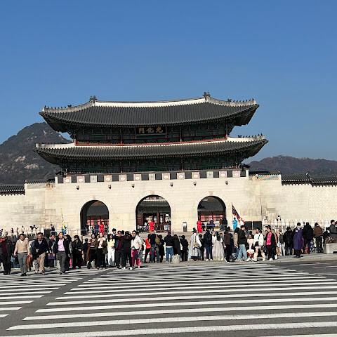 경복궁은 서울의 아름답고 상징적인 랜드마크로, 한국의 역사와 왕실 건축을 엿볼 수 있는 인상적인 곳입니다. 넓은 경내는 잘 관리되어 있고, 전통 건물들은 다채로우며, 산을 배경으로 한 풍경은 아름다운 풍경을 완성합니다. 사진을 찍고, 여유롭게 산책을 즐기며, 조선 시대에 대해 더 자세히 알아보기에 좋은 곳입니다. 입장권은 쉽게 구매할 수 있으며 1인당 3,000원에 불과하여 모든 방문객에게 저렴하고 강력 추천하는 선택입니다.