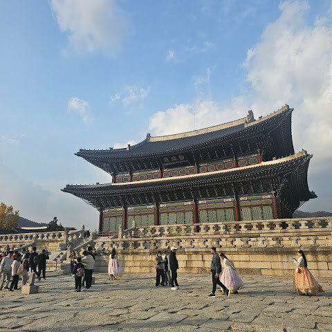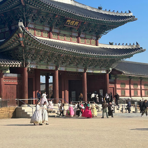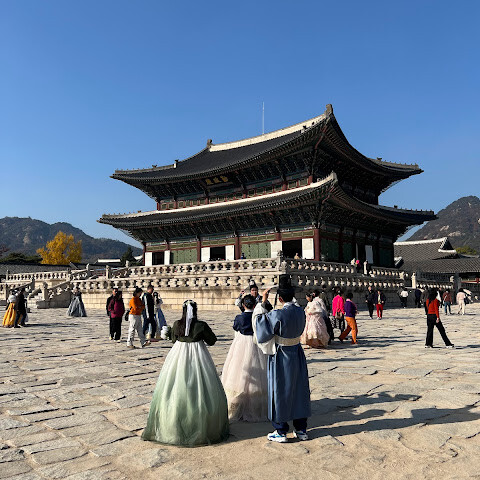 한국 문화를 경험하고 싶다면 경복궁을 꼭 방문하세요. 한복 대여도 잊지 마세요. 한복을 대여하면 입장료가 면제됩니다.
