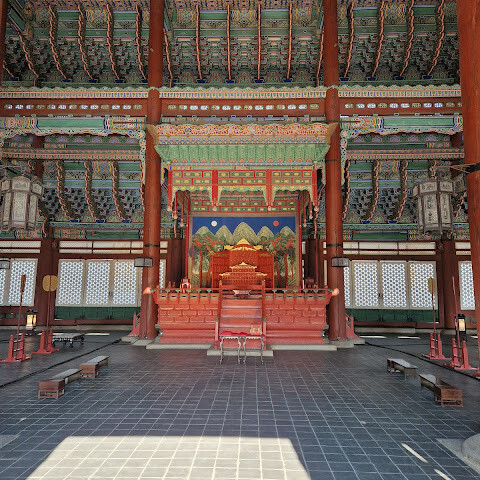 서울에 있는 황궁 중 하나인 경복궁은 입장료가 1인당 1,000원이라는 상징적인 가격으로, 과거와 조선 왕조 말기의 황궁 배치를 보여줍니다. 공식 행사, 휴식, 그리고 수면을 위해 황제가 머물렀던 궁궐을 보는 것은 흥미로운 경험입니다. 넓은 경내에는 아름다운 나무들과 연못이 있어 정말 매력적이었습니다.