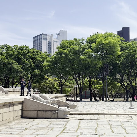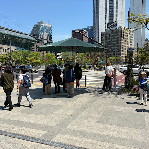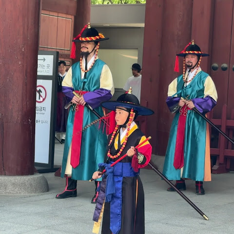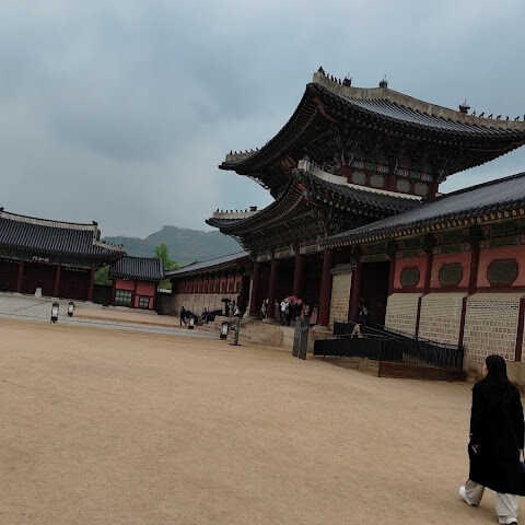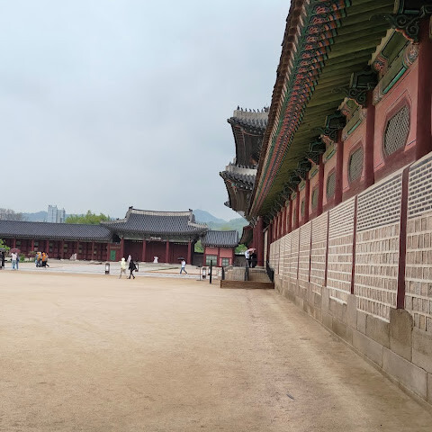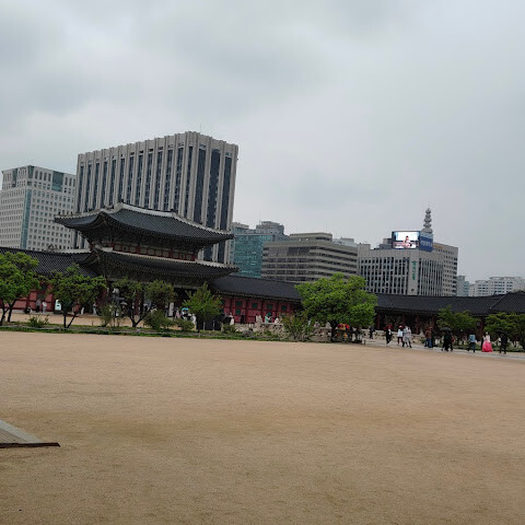 서울 한복판에 있는 아주 크고 아름다운 궁궐이에요. 마침 무료 입장일이라 더 좋았어요. 한복을 입은 소녀들을 보니 더욱 아름다운 풍경이었어요. 궁궐 밖에는 특이하고 재미있는 조각상도 있었는데, 제 사진에서 보실 수 있어요.
