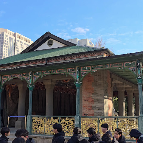 덕수궁에 다녀왔습니다. 대한문을 통해 들어가면 오른쪽에 골동품과 금문묘의 풍사자상과 비슷한 도자기를 파는 가게가 있습니다. 서울에 있는 덕수궁은 조선 말기와 대한제국의 왕궁입니다. 전통적인 한국 건축 양식과 서양식 건축 양식이 조화롭게 어우러진 독특한 건축물이 특징입니다. 주요 궁궐 건물로는 정화전, 석조전, 정관헌, 덕홍전이 있으며, 궁궐박물관과 미술관도 있습니다. 덕수궁의 정문인 대한문 앞에서는 조선 시대 궁궐 수문지기의 임무를 재현하는 전통 수문장 교대식이 매일 오전 10시, 오후 2시, 오후 3시 30분에 열립니다. 덕수궁의 아름다운 돌담길 또한 산책이나 데이트 장소로 유명합니다. 야간에도 개방되어 많은 관광객을 끌어들이는 이곳은 서울의 역사와 현대가 조화롭게 어우러진 모습을 경험할 수 있는 필수 방문 장소입니다. 입장료는 단 1,000원입니다. 또는 경복궁에서 서울의 5대 궁궐을 모두 관람할 수 있는 통합 티켓을 구매할 수도 있습니다. 저는 2025년 12월 9일에 방문했습니다.