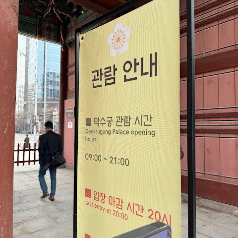 덕수궁은 한국 제124호 사적지입니다. 성인 입장료는 1,000원(약 5위안)입니다. 저희 어머니처럼 외국인 노인분들은 여권을 제시하면 무료로 입장하실 수 있습니다.