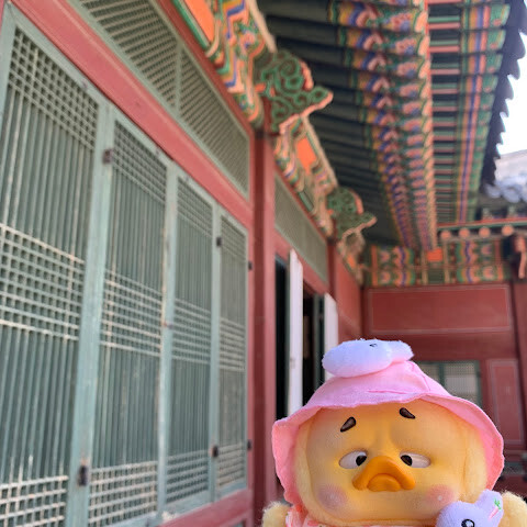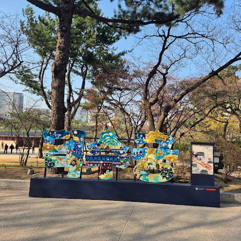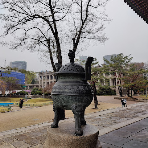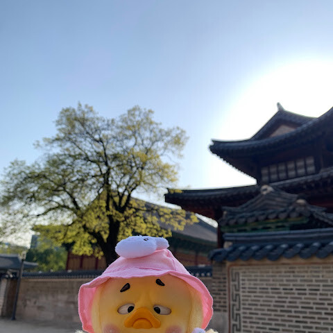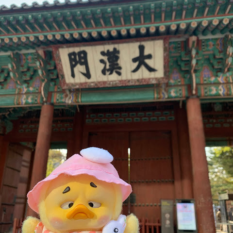 서울 한복판에 있는 아주 크고 아름다운 궁궐이에요. 마침 무료 입장일이라 더 좋았어요. 한복을 입은 소녀들을 보니 더욱 아름다운 풍경이었어요. 궁궐 밖에는 특이하고 재미있는 조각상도 있었는데, 제 사진에서 보실 수 있어요.