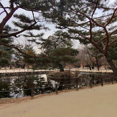원래는 종묘를 방문할 계획이었고, 경복궁 방문 시 종묘 입장권이 포함된 5궁 통합 티켓까지 구매했었습니다. 하지만 도착 당일, 극심한 추위로 인해 종묘 입장은 가이드 투어만 가능하며 무료 입장은 허용되지 않는다는 안내 방송이 나왔습니다. 직원에게 문의해 보니 중국어 가이드 투어는 추가로 한 시간을 기다려야 한다고 했습니다. 결국 일정과 날씨를 고려하여 투어는 포기하고 종묘 공원 주변을 산책하는 것으로 만족해야 했습니다. 다소 아쉬웠지만, 이번 일을 계기로 앞으로 종묘를 방문할 계획이 있는 분들께서는 겨울철 방문 시에는 당일 규정과 가이드 투어 시간을 미리 확인하시는 것이 좋다는 점을 명심하시기 바랍니다.