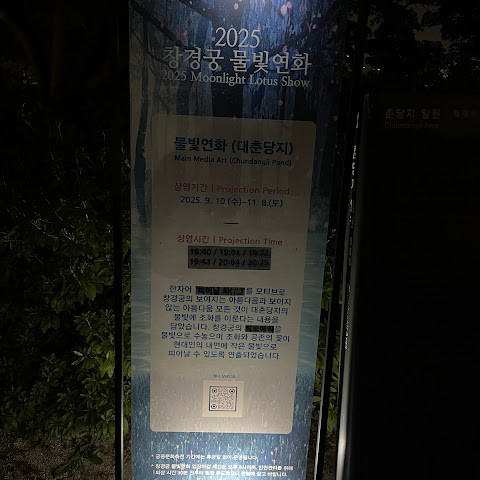 10월 3일, 창덕궁 가이드 투어에 참여했습니다. 세자궁과 태후궁을 닮았다고 하더군요. 주변에는 동궁의 원래 터라고 적힌 천막들이 많이 있었습니다. 창덕궁과 연결되어 있어서 뒷정원은 들어갈 수 있지만, 비원에는 들어갈 수 없습니다. 정말 신비로워서 입구를 찾을 수가 없었습니다. 창덕궁 매표소에 두 번이나 갔지만 두 번 다 매진이라고 하더군요.