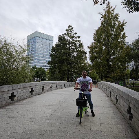 특히 자전거를 타고 산책하는 걸 좋아해요. 날씨가 좋을 때 주말을 보내는 재미있는 방법이에요. 공원이 꽤 넓은데 전기 자전거로 쉽게 돌아다닐 수 있어요. 정말 재밌어요. 사람도 많고, 산책하는 사람들도 많아요. 지하철역 두 곳 근처에 있어서 접근성도 좋아요.