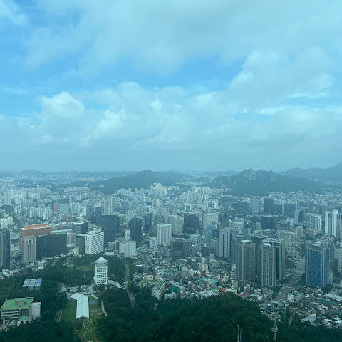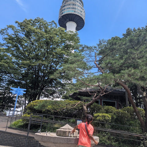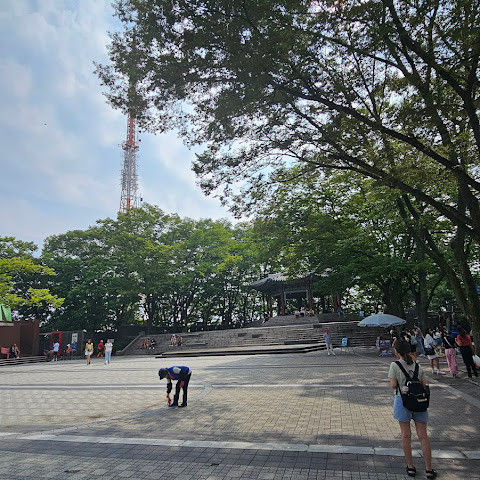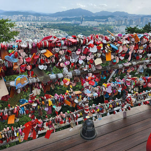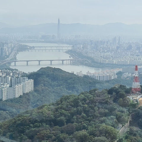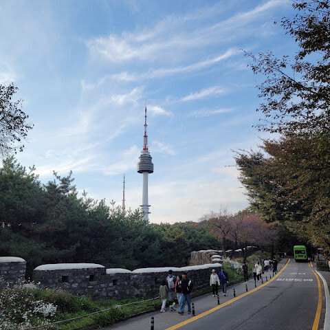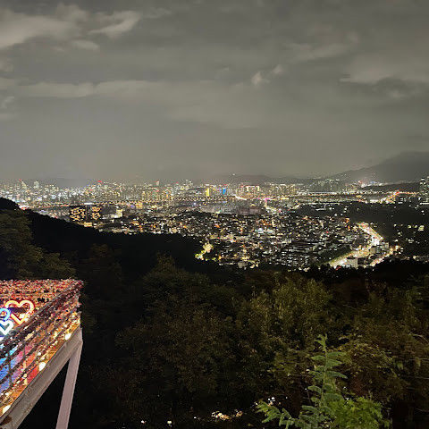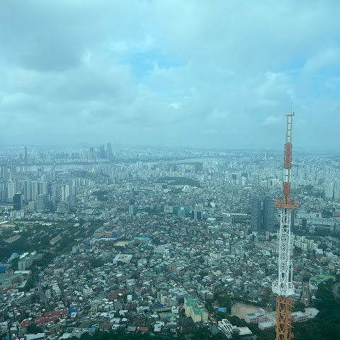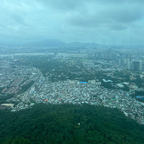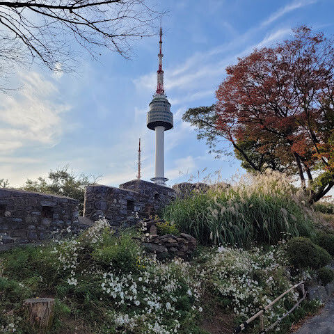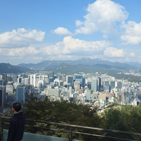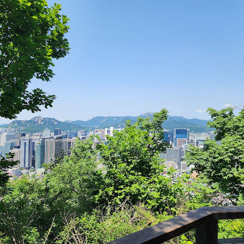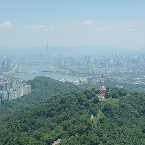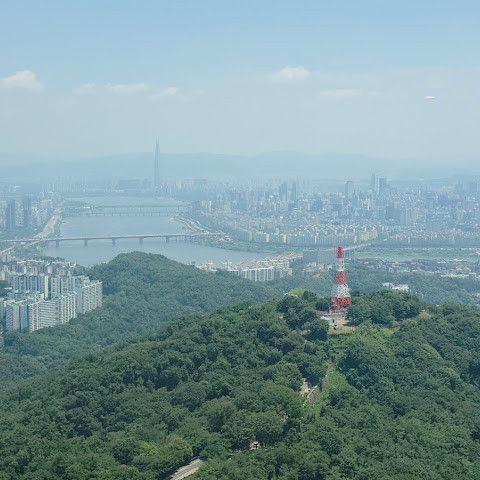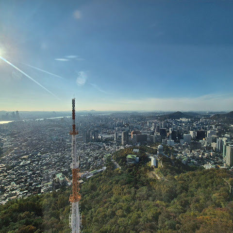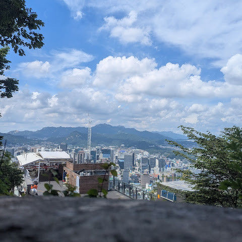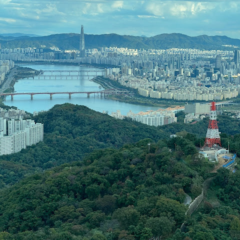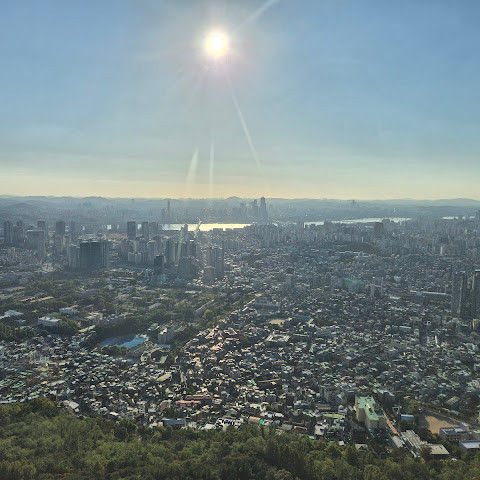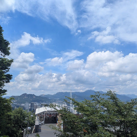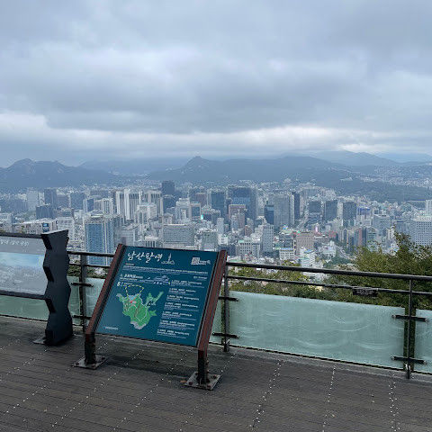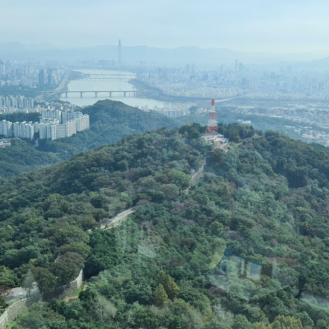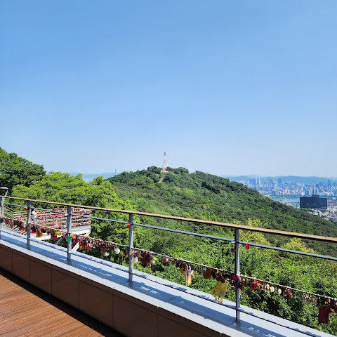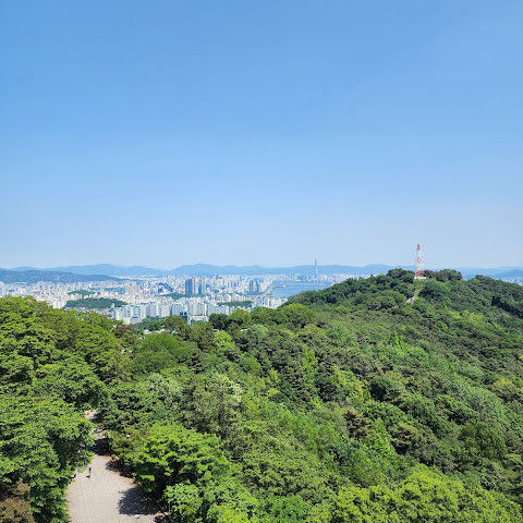여기서 잠깐 하이킹을 하면서 높은 곳에서 서울을 내려다보는 건 정말 즐거운 경험이었어요. 이 타워 정말 좋아요.