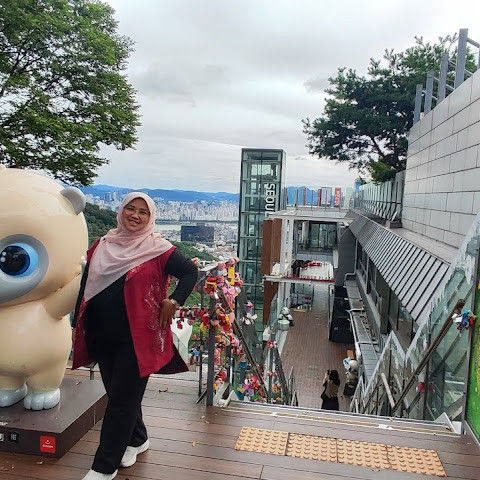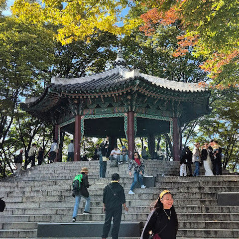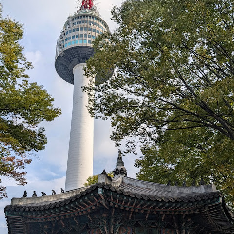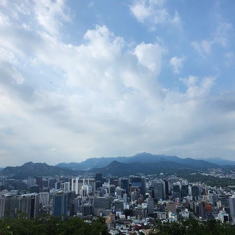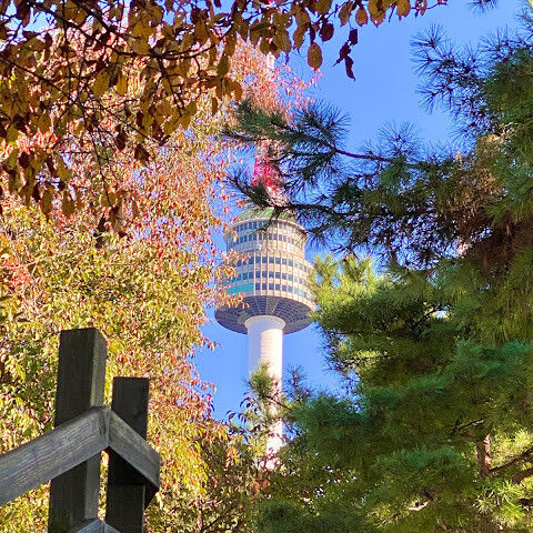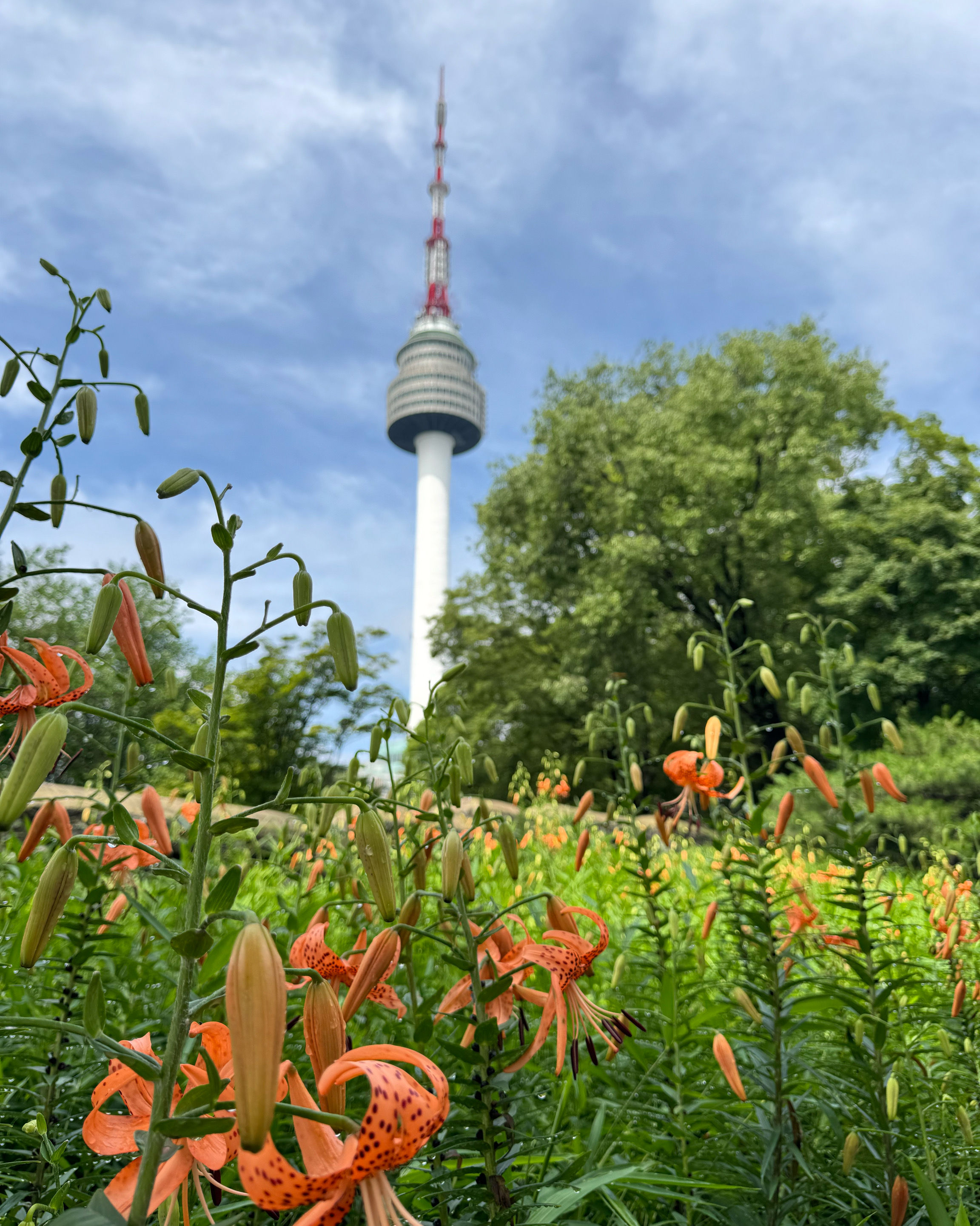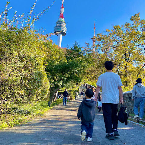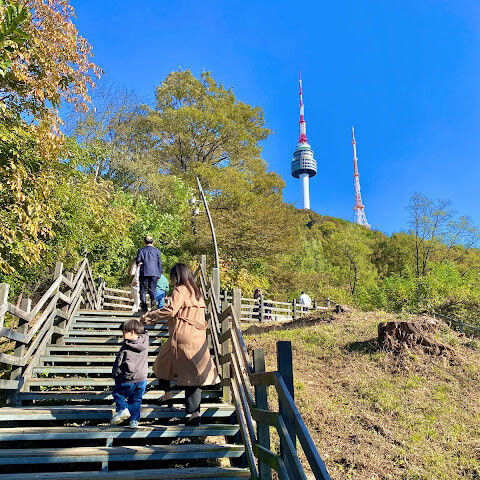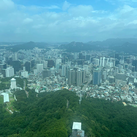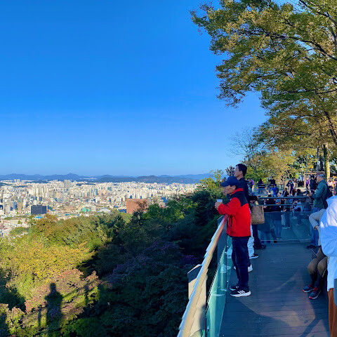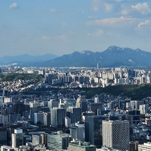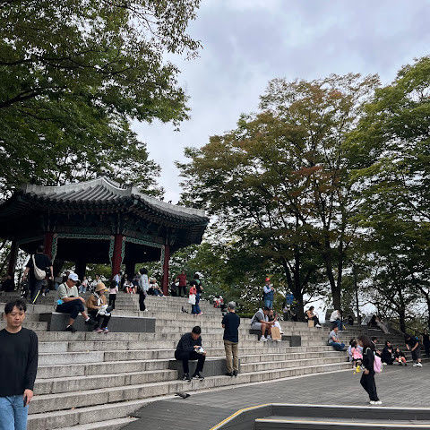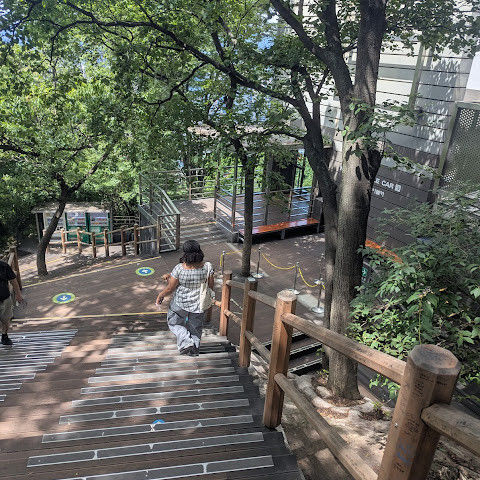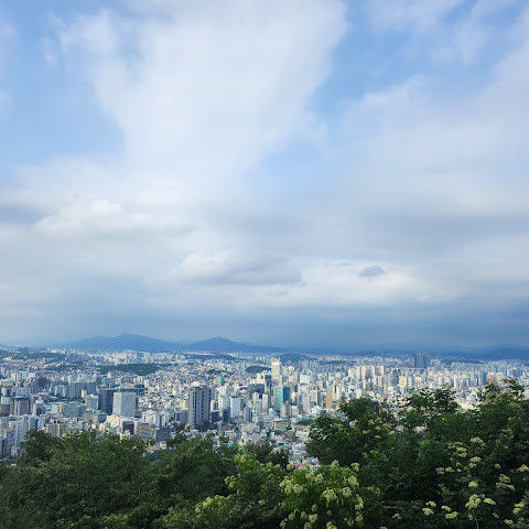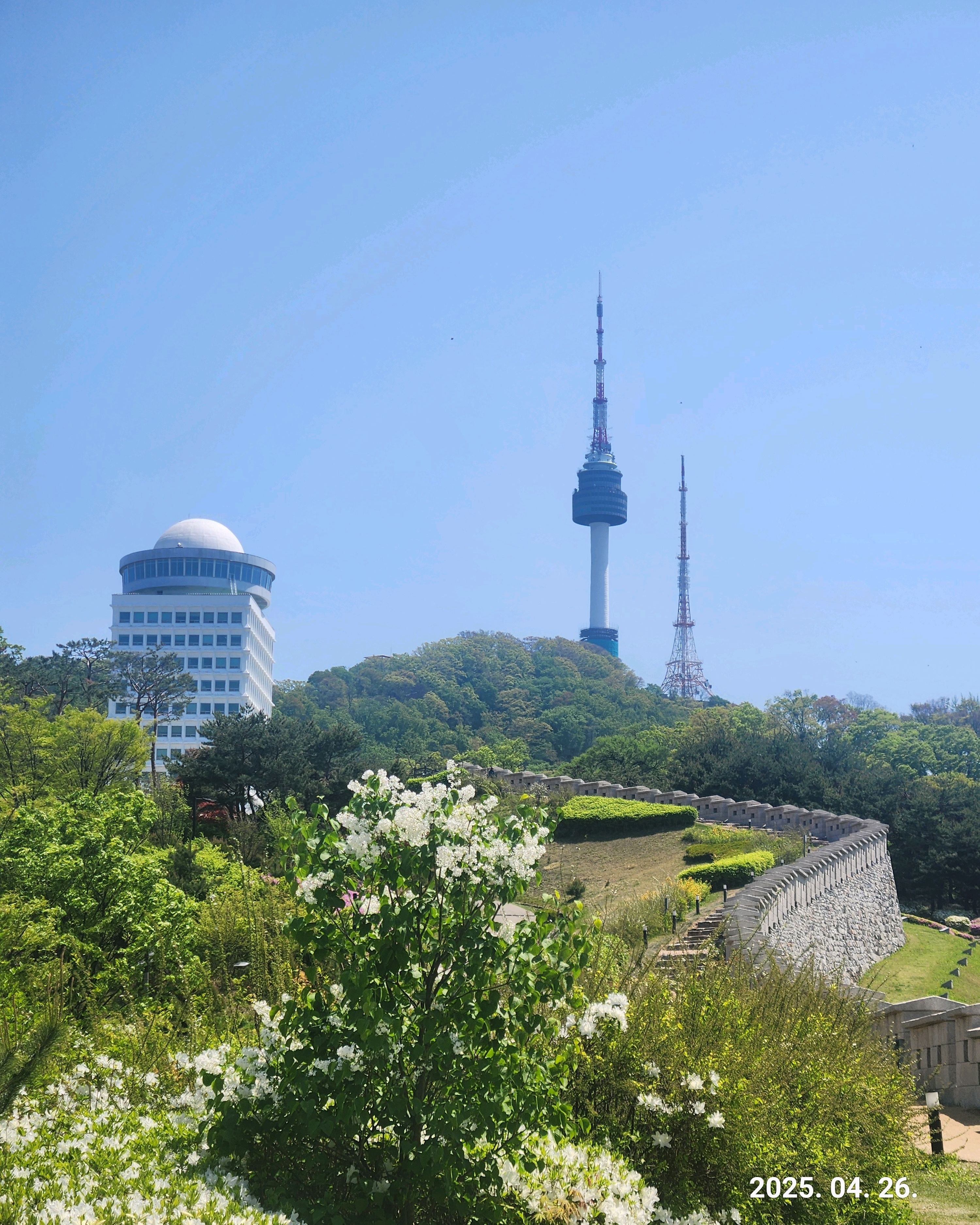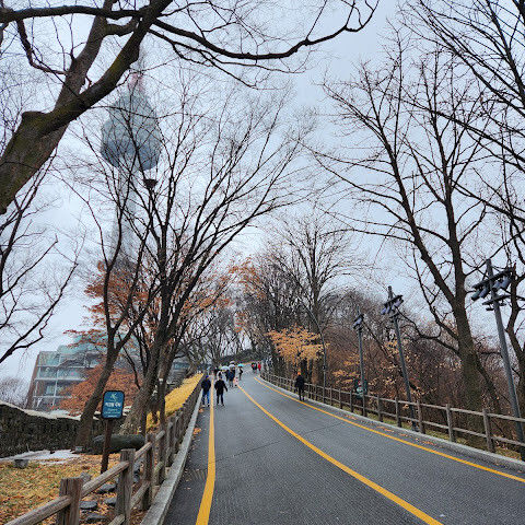 여기서 잠깐 하이킹을 하면서 높은 곳에서 서울을 내려다보는 건 정말 즐거운 경험이었어요. 이 타워 정말 좋아요.