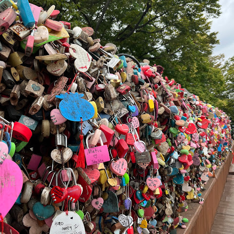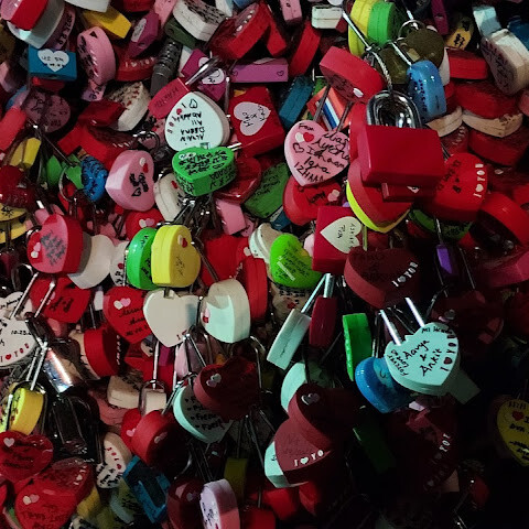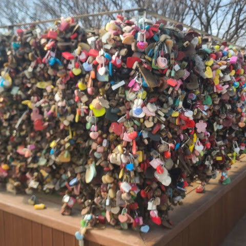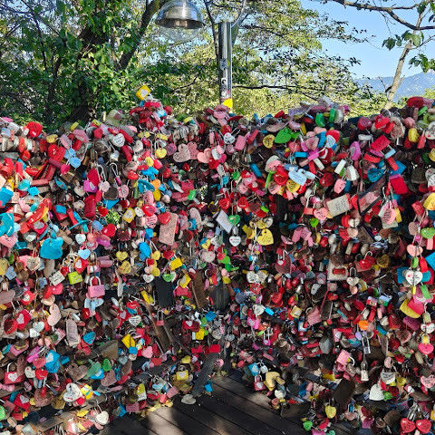 남산 서울타워에 가시면 역시나 사랑의 자물쇠 하나씩 걸어두고 오시는데, 저도 구 여친 현 아내와 언젠가 걸어놨던 자물쇠가 어딘가에 있을 겁니다.