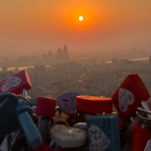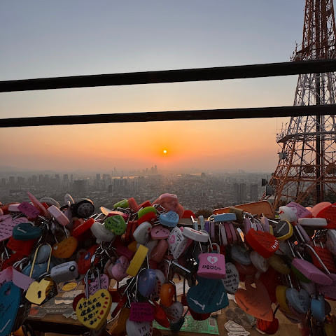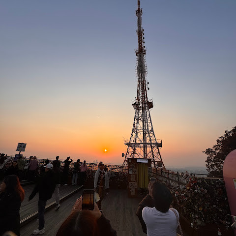 서울의 멋진 전망!!! 도시의 불빛을 감상하려면 밤에 방문하는 것이 가장 좋습니다. 자물쇠를 사서 사랑의 자물쇠 구역에 있는 탑 주변에 걸어둘 수도 있습니다.