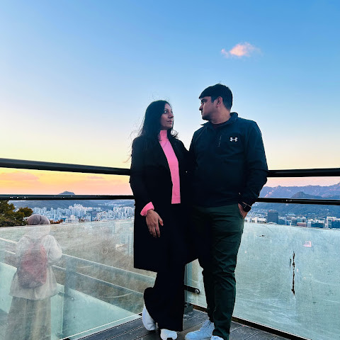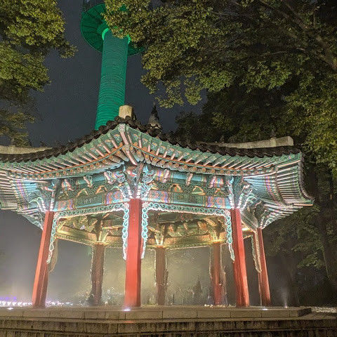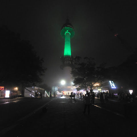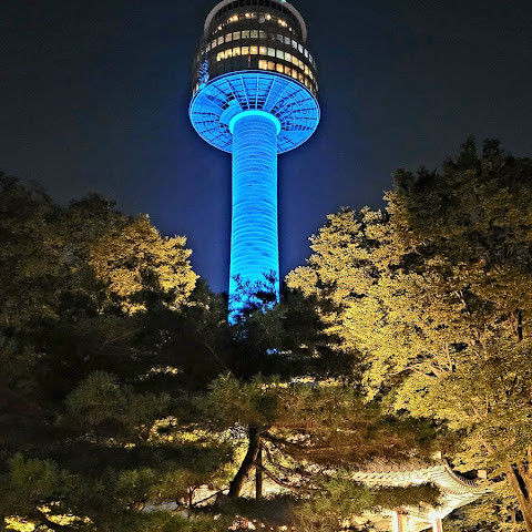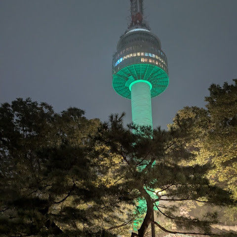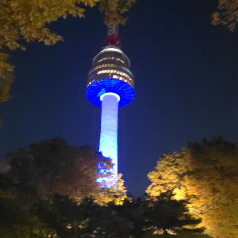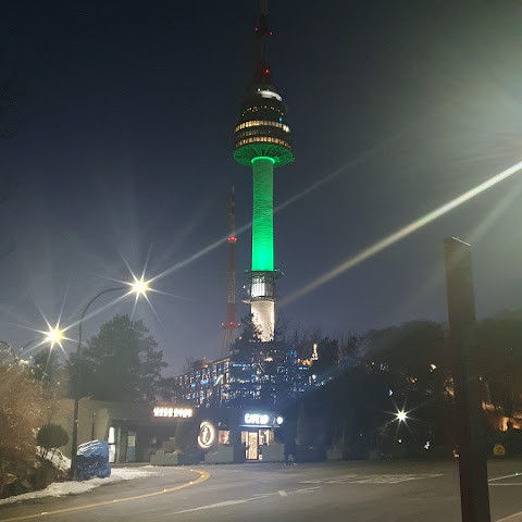 저녁에 서울타워에 도착했습니다. 타워로 가는 길과 타워 자체에서 보이는 풍경이 정말 아름다웠습니다.