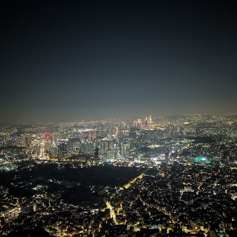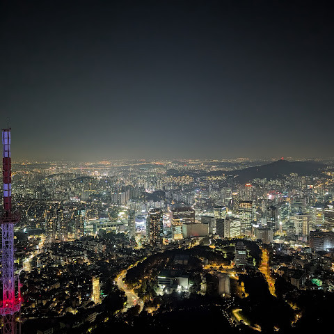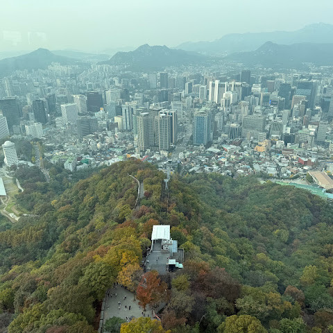 서울 여행에서 꼭 가봐야 할 곳이에요. 경치가 정말 끝내줘요. 주말에는 사람이 많으니 각오하세요. 전에는 걸어서 올라갔는데, 케이블카는 재밌지만 줄이 엄청 길고 오래 기다려야 했어요. 이번에는 자전거를 타고 올라갔는데 가파르더라고요… 다행히 전기 자전거가 있어서 다행이었어요! 꼭대기에 있는 작은 명판과 표지판도 놓치지 마세요. 흔히 간과하지만 서울의 지리적 중심지예요. 정말 멋져요.