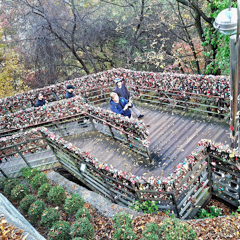 하지만 정상에 도착했을 때, 수많은 자물쇠에 깜짝 놀랐습니다! 새 자물쇠일 때는 그 아름다움을 이해할 수 있지만, 몇 년이 지나면 녹이 슬어 그 매력이 훨씬 떨어지죠.