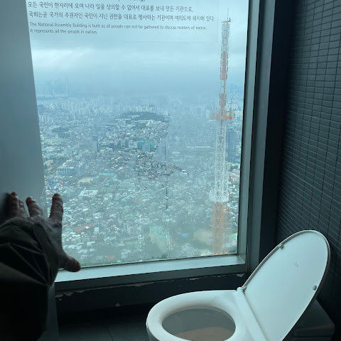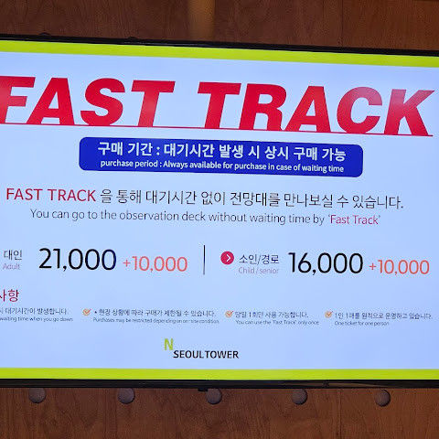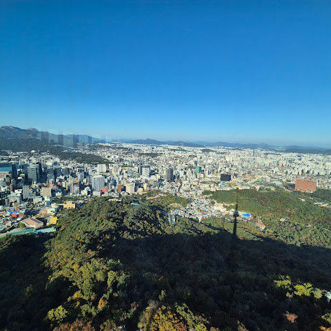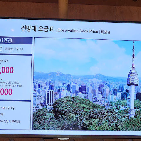 개인적으로 서울타워 원형 구조물에 올라가서 경치를 감상하는 데 굳이 돈을 낼 필요는 없다고 생각해요. 아래에서도 멋진 경치를 볼 수 있으니까요. 굳이 돈을 내고 올라가지 않는 걸 강력히 추천합니다. 하하.