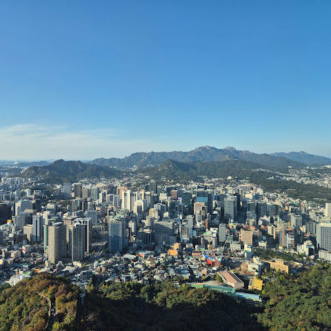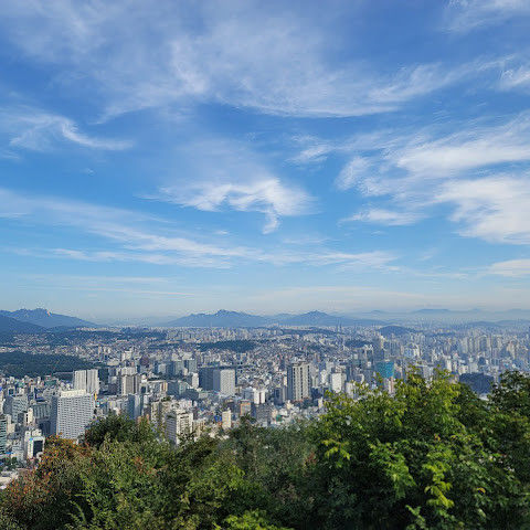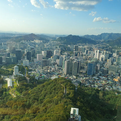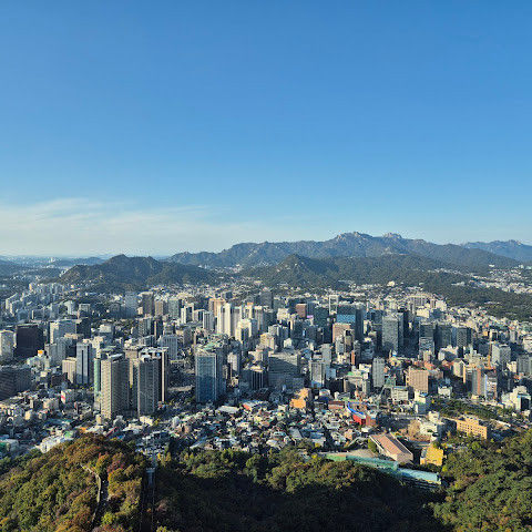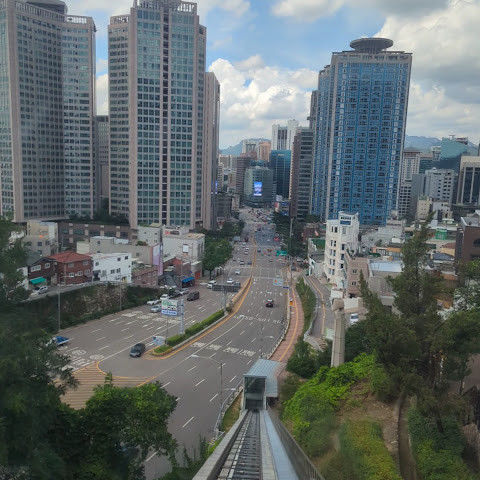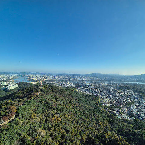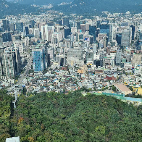 서울의 아름다운 전망입니다. 리프트를 타고 올라가고, 걸어서 내려가는 것을 추천합니다. 산책은 매우 쾌적하고 평화롭습니다.