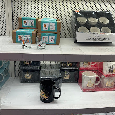 위층 전망이 정말 좋고, 관광 기념품도 다양하게 판매하고 있습니다. 창가에는 편안하게 쉴 수 있는 테이블과 의자도 많이 있습니다.