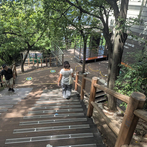 버스를 타고 도착했는데, 많은 한국인들이 운동 삼아 달리고 오르내리곤 합니다. 사실 버스를 추천합니다. 버스를 타도 꽤 가파른 경사를 올라가야 하지만, 경치는 정말 볼 만한 가치가 있습니다.