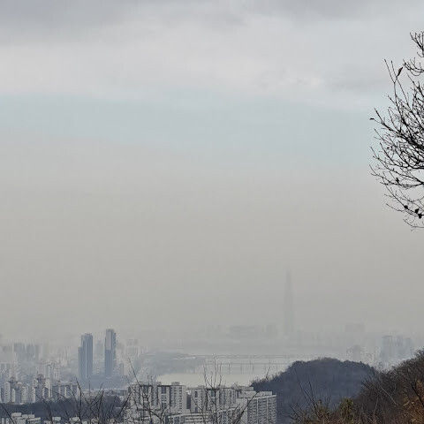 화창한 날씨이긴 한데 먼 곳은 흐릿하게 보이지만