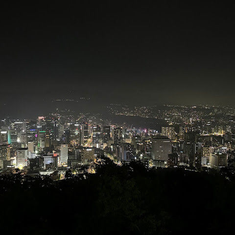 서울타워에서 보는 풍경도 거의 비슷했는데, 타워에서 내리면 언덕 위에 서울이 한눈에 내려다보이는 멋진 광장이 있어요. 창문에 반사되는 빛 걱정 없이 사진 찍기 딱 좋거든요. 굳이 타워까지 올라갈 필요도 없고요. 👍🏻✨