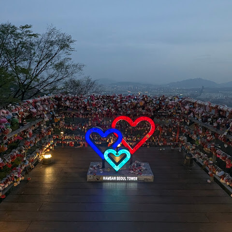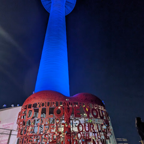 저녁에 서울타워에 도착했습니다. 타워로 가는 길과 타워 자체에서 보이는 풍경이 정말 아름다웠습니다.<br>타워로 가는 길에는 흥미로운 곳들이 몇 군데 있습니다.<br>타워 내부에는 조명 전시, 서울 전망, 그리고 멋진 기념품 가게가 있습니다.