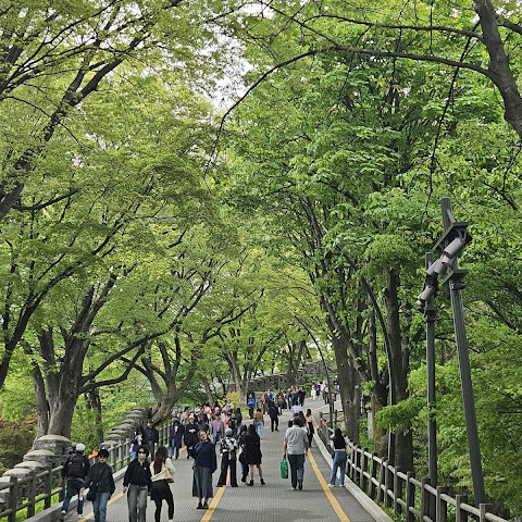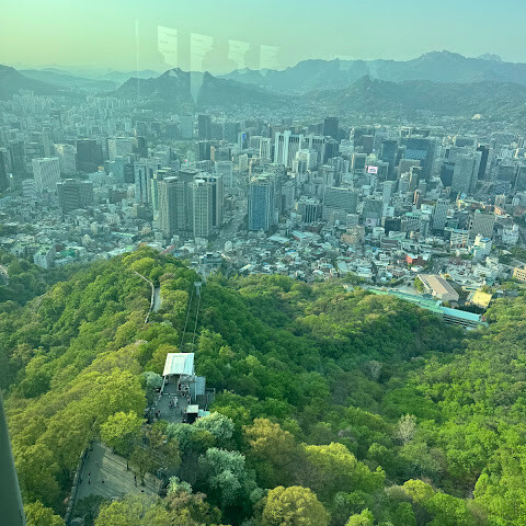 케이블카를 타고 타워 아래까지 올라가는 데 시간이 꽤 걸렸습니다. 산책로가 아주 멋지고 서울의 멋진 전망도 볼 수 있습니다. 타워 꼭대기까지 꼭 올라가야 하는 건 아닐지도 모릅니다.