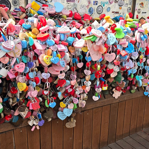 칠이 벗겨지고 녹슨 것부터 새것까지 수많은 사람의 약속과 추억이 촘촘히 쌓여있는 '사랑의 자물쇠' 는 묘하게 뭉클합니다.
