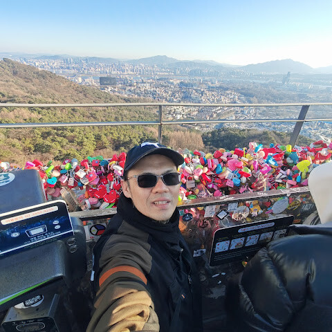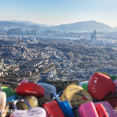 우리는 눈길을 걸어 올라갔는데, 길이 눈으로 덮여 있었어요... 정말 추천합니다. 타워 꼭대기에 올라가서 사진도 찍고 영상도 찍었어요. 서울 시내 거의 전체를 조망할 수 있어요.