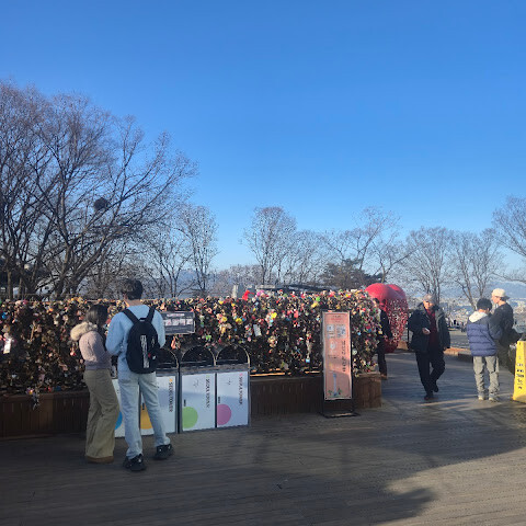 많은 한국 드라마에서 탑들을 본 후, 실제로 경험해 보니 정말 멋진 경험이었어요! 참고로 그때 기온은 영하 10도(섭씨 -10도)였습니다. 여러 곳에서 본 사랑의 자물쇠와 새들이 어우러진 모습은 정말 숨 막힐 정도로 아름다웠습니다.