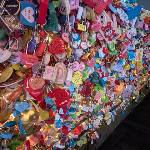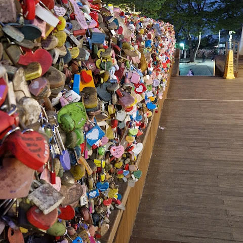 연인들이 자물쇠 걸어두는 공간도있고