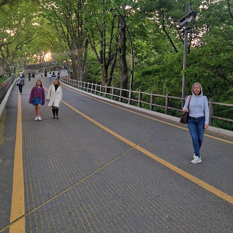남산 백범광장 -> 남산타워까지 걸어서 갔어요! 타워까지 가는 길에 계단이 많아서 중간중간 계속 쉬어주면서 갔어요.. 타워까지 걸어가는 코스가 너무 힘들었지만 아름다운 풍경에 힘듬이 사르르 녹아버렸다..😁