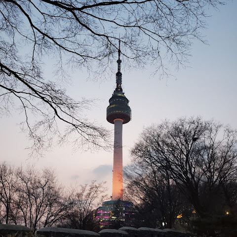 한국에 와서 서울타워를 어떻게 안 볼 수 있겠어요?! 설날이라 사람이 너무 많아서 케이블카 티켓을 사서 줄을 서야 했어요. 그래서 멀리서 사진만 찍을 수밖에 없었답니다.