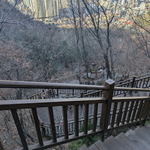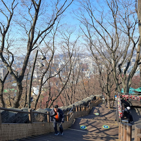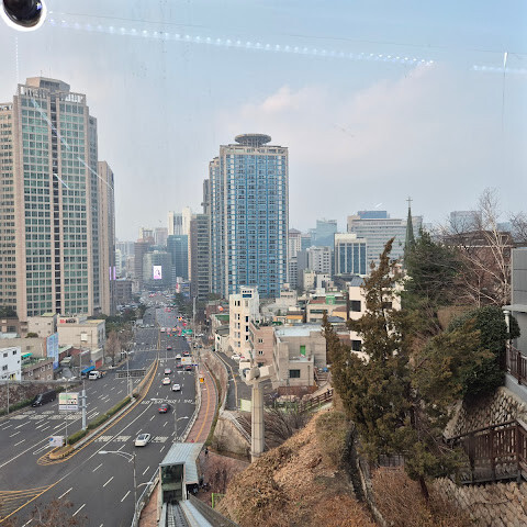 언덕 꼭대기에서 광활한 서울의 멋진 전망을 감상하세요. 케이블카를 타지 않고 걸어서 올라가는 경우, 64층 계단을 오르는 것과 같은 효과를 낸다는 점을 미리 알려드립니다.
