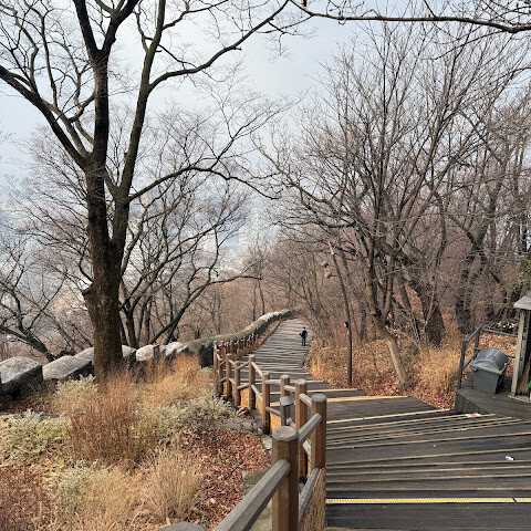 11월 말, 서울타워에는 비가 내려서 습하고 추웠으며 사람도 별로 없었습니다.
