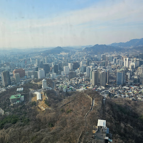 타워 꼭대기에서 바라보는 서울의 아름다운 전경. 서울을 방문하는 관광객이라면 꼭 사진을 찍어야 할 명소입니다.