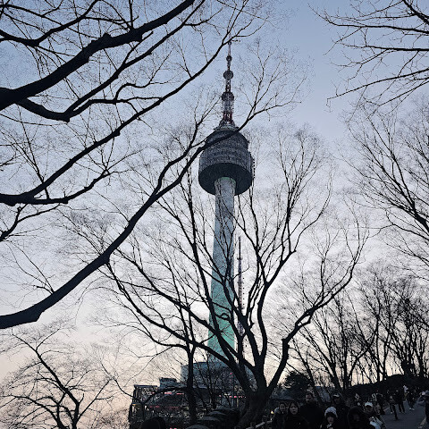 한국에 와서 서울타워를 어떻게 안 볼 수 있겠어요?! 설날이라 사람이 너무 많아서 케이블카 티켓을 사서 줄을 서야 했어요. 그래서 멀리서 사진만 찍을 수밖에 없었답니다.