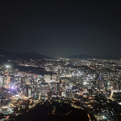 말로 다 표현할 수 없을 만큼 너무 아름다웠어요~ 도시 전체가 반짝이는 듯한 느낌이라 눈을 떼기 어려웠고, 차가운 밤공기 속에서 바라본 서울의 풍경은 마음까지 차분하게 만들어주더라고요~ 전망대에서 내려다보는 불빛들은 마치 별이 내려앉은 것처럼 반짝였어요 ✨